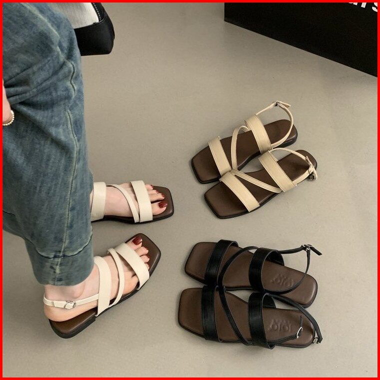 Sandal Flat Wanita Fashion Korea Busa Empuk Terbaru Cewek Kekinian Tali Sling Back