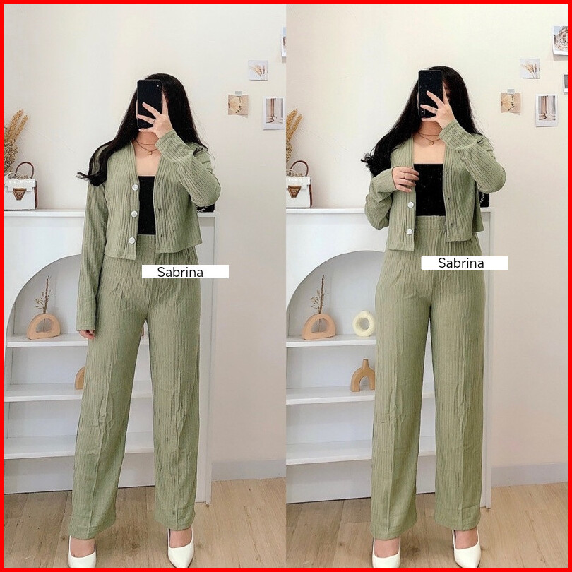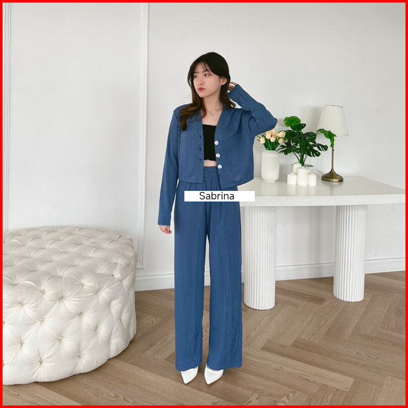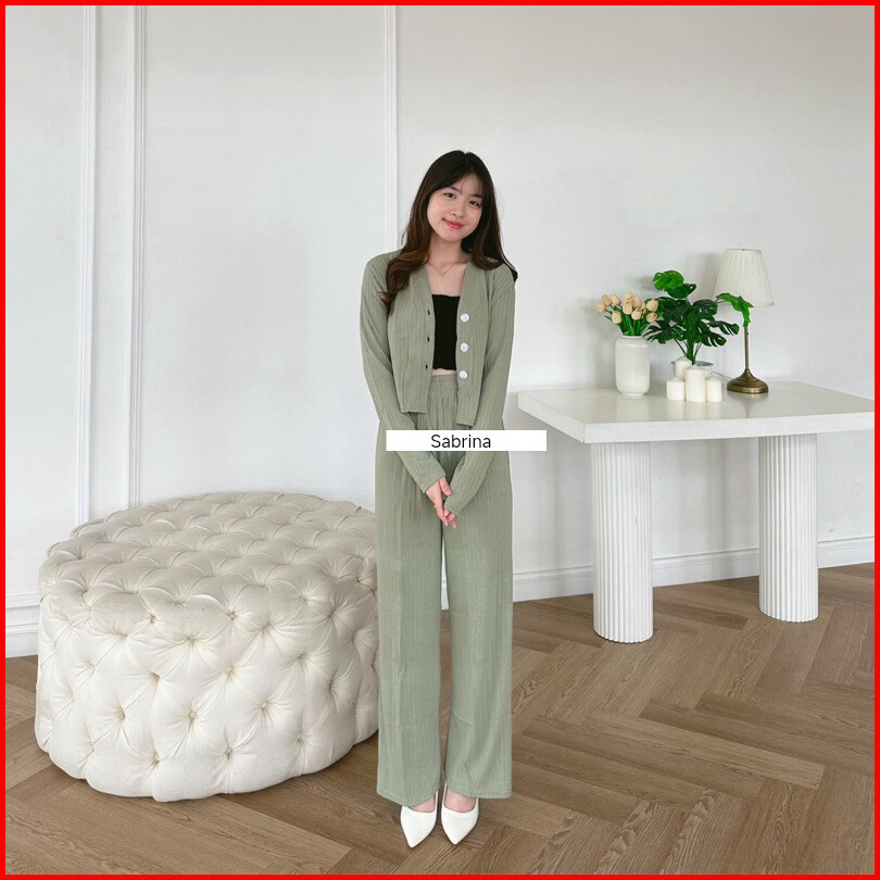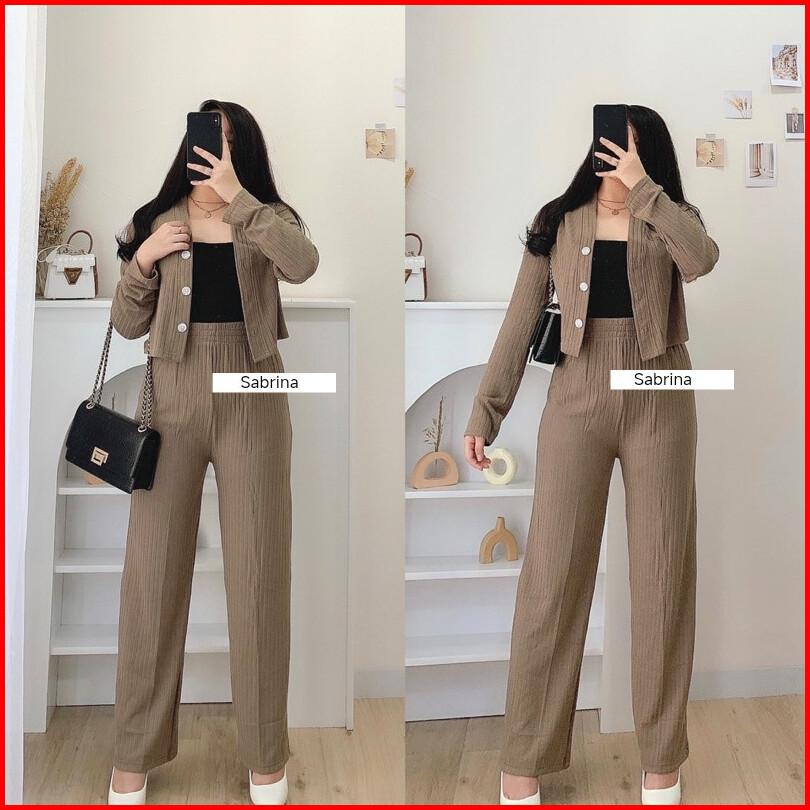 Cif Set Casey Premium Knit Hornet Setelan Baju Wanita Cardi Crop Dan Celana Kulot Pants