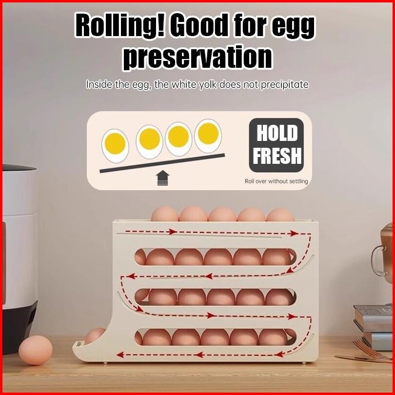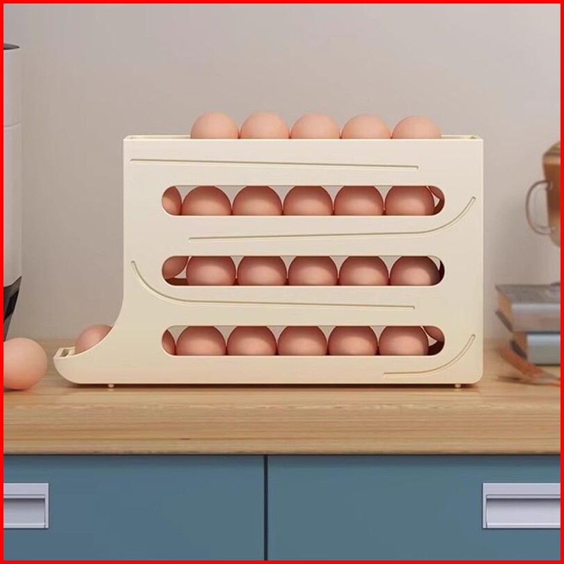 Nusaliving Rak Tempat Telur Ayam Kulkas 4 Tingkat Bergulir Otomatis Kotak Penyimpanan Telur Rak Telor Susun Egg Box
