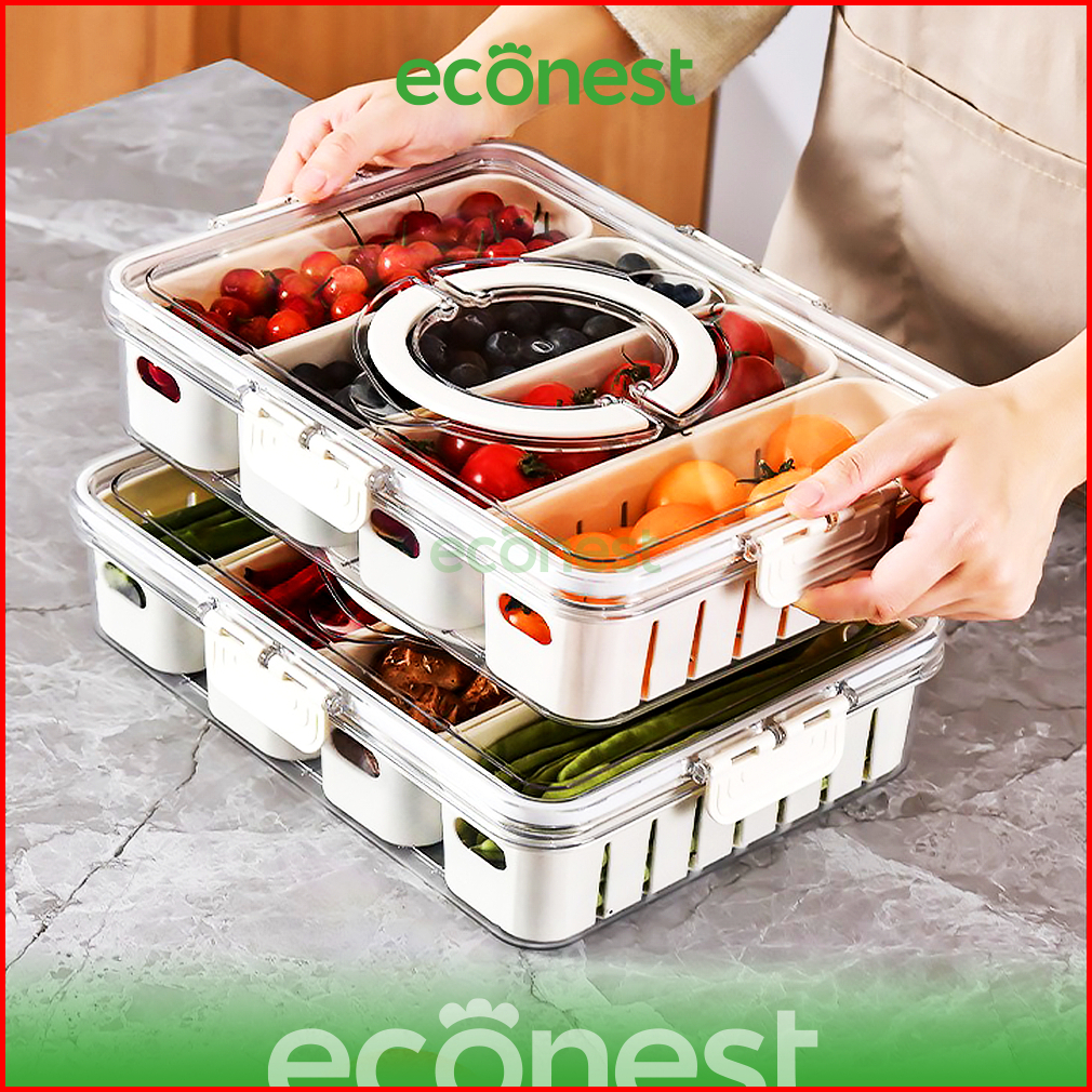 Econest Wadah Sayur Buah Anti Bau Kedap Udara Kotak Penyimpanan Kulkas Makanan Hemat Ruang