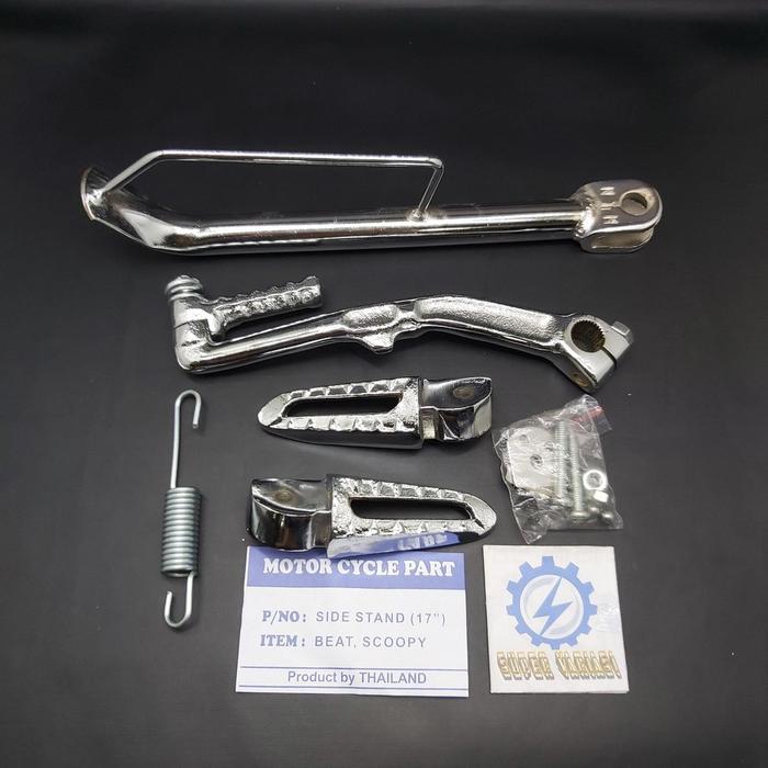 FOOTSTEP BELAKANG CNC+STANDAR SAMPING RING 17+SELAHAN CHROME UNIVERSAL BEAT SCOOPY VARIO GENIO DLL - PRODUK SAJA