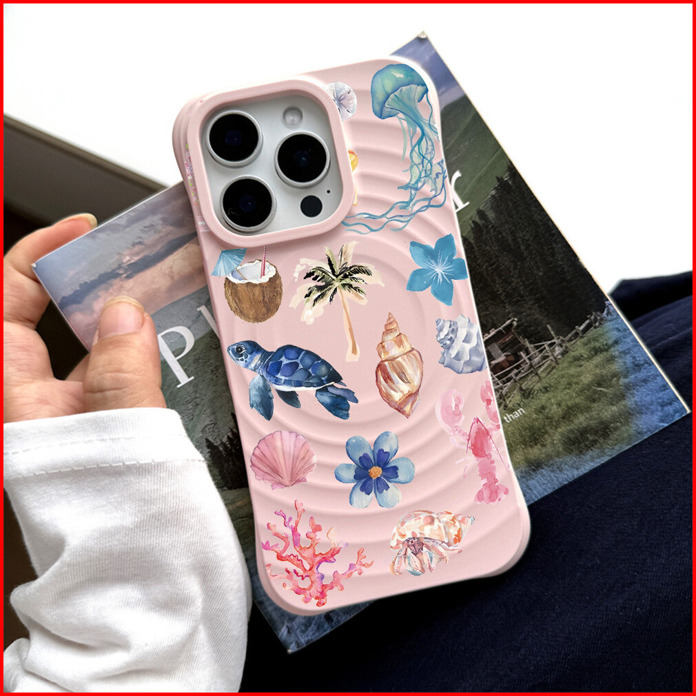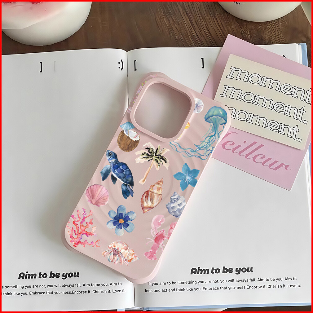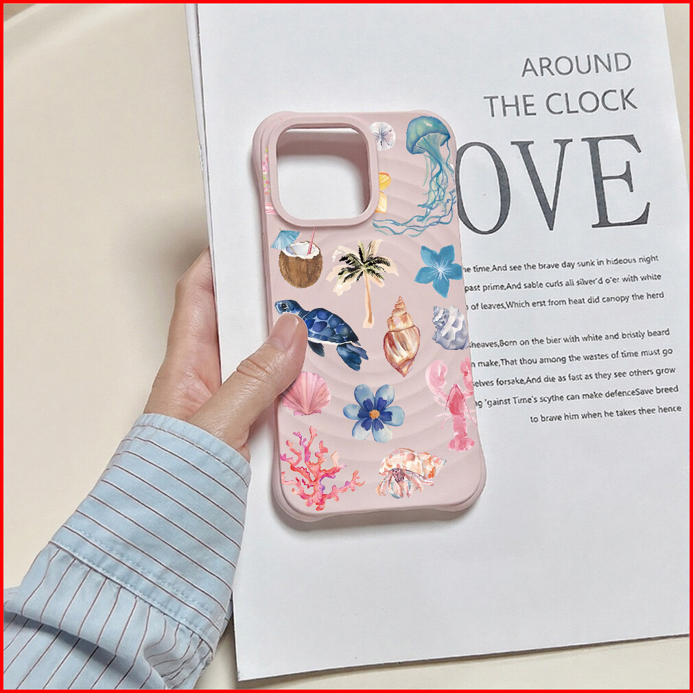 Maxcobber Exquisite Seashell Turtle Jellyfish Case Compatible For Iphone 11 12 13 14 15 Pro Plus Promax Wave Silicon Tra