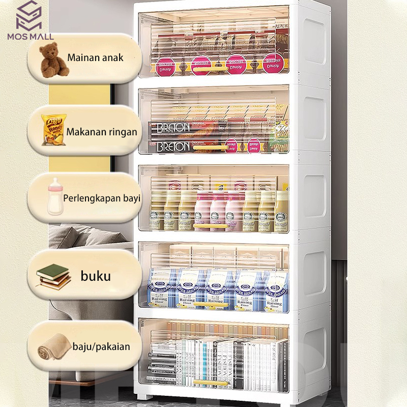 40/50CM Lemari Penyimpanan Plastik/Lemari Lipat Serbaguna Transparan/Kabinet Flip/Lemari Jajan/Lemari Dapur/Lemari Plastik Baju Anak