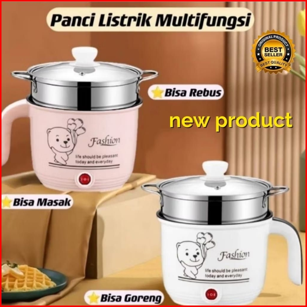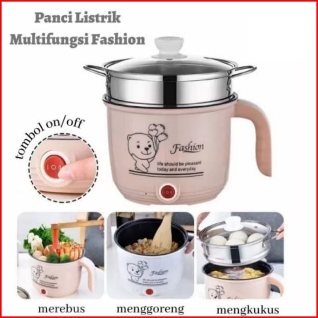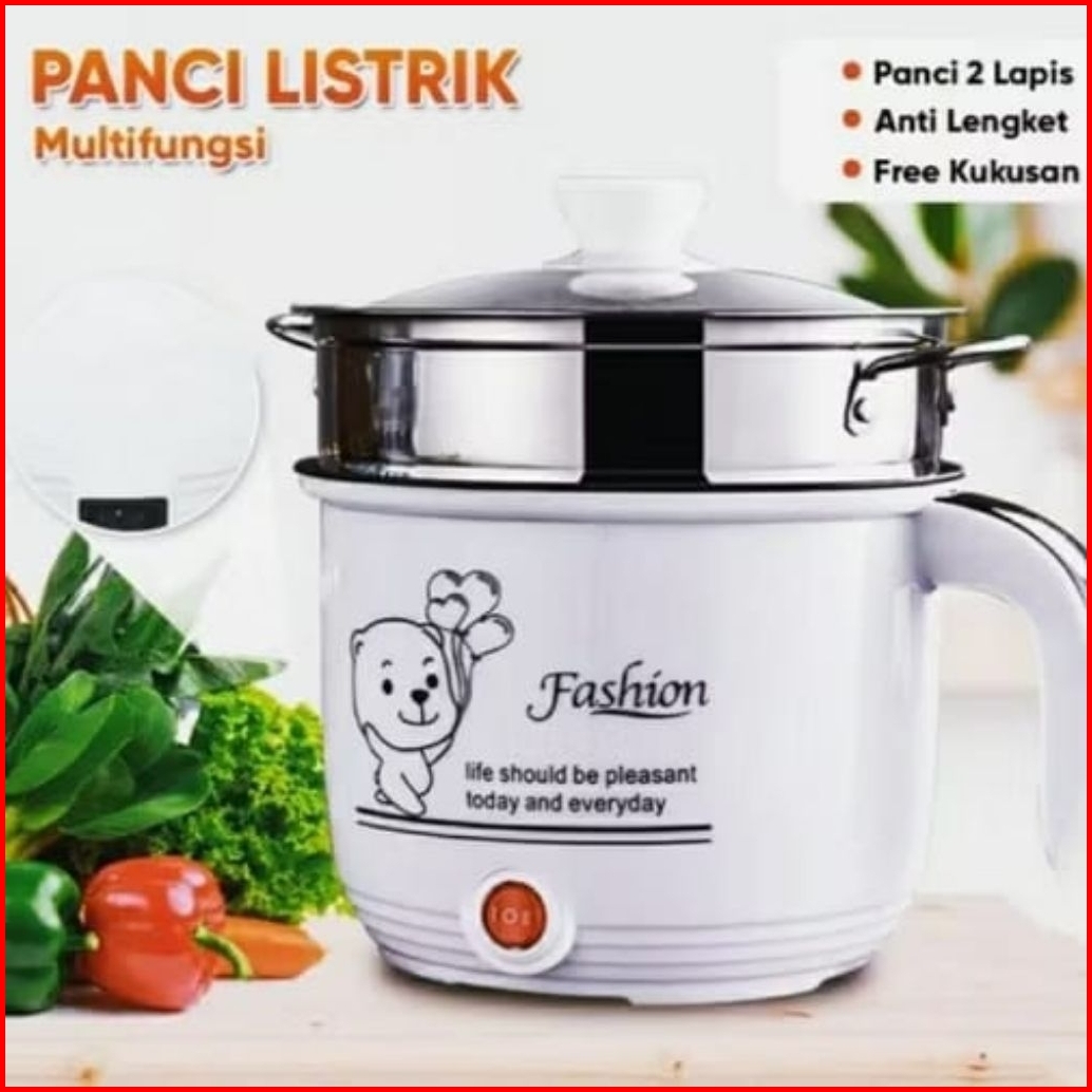 Panci Listrik Multifungsi 18 Cm Anti Lengket Free Kukusan Steamer Stainless Lapis Teflon Cooking Pot