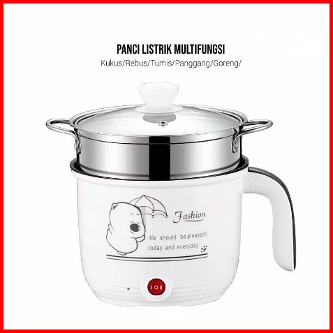 Panci Listrik Serbaguna Panci Electric Pot Free Kukusan Stainless Steel Panci Penggorengan 0.8l