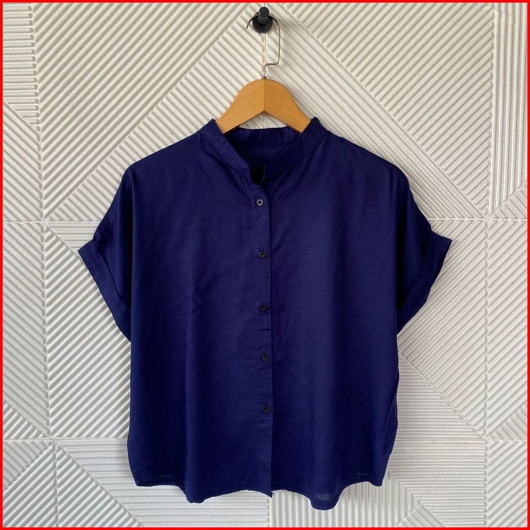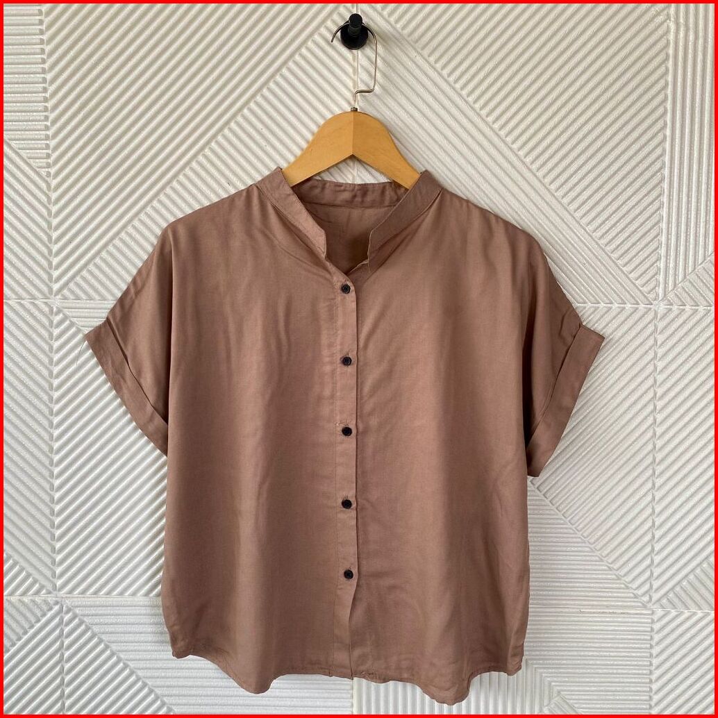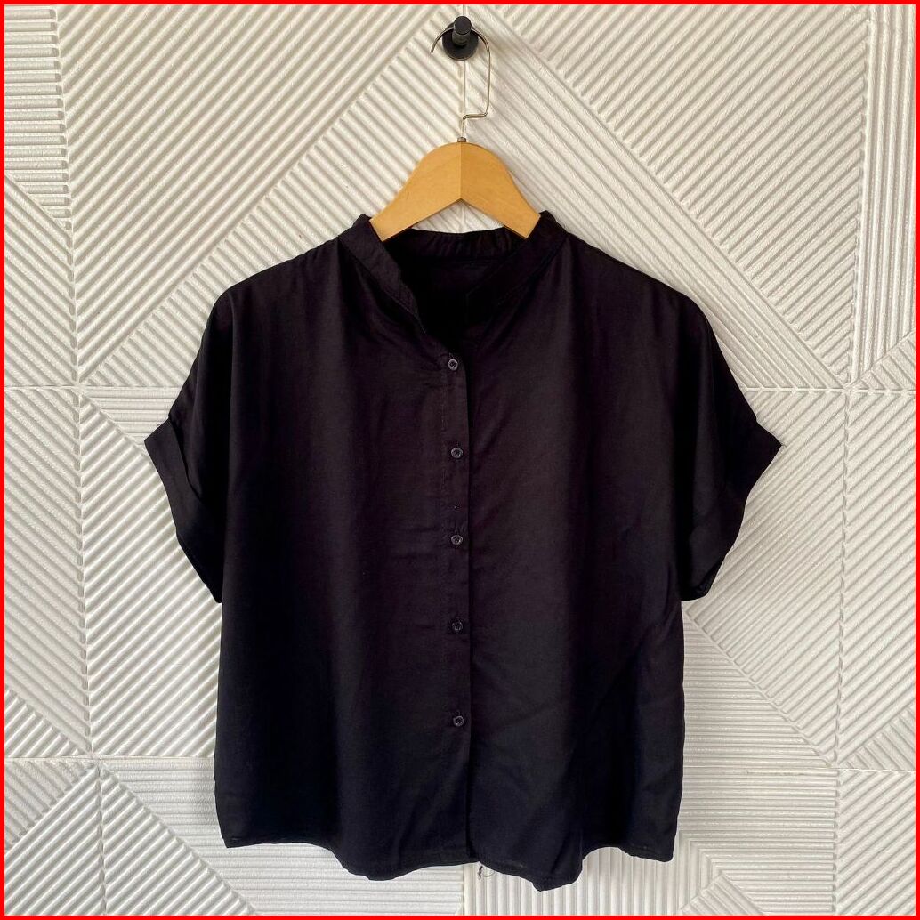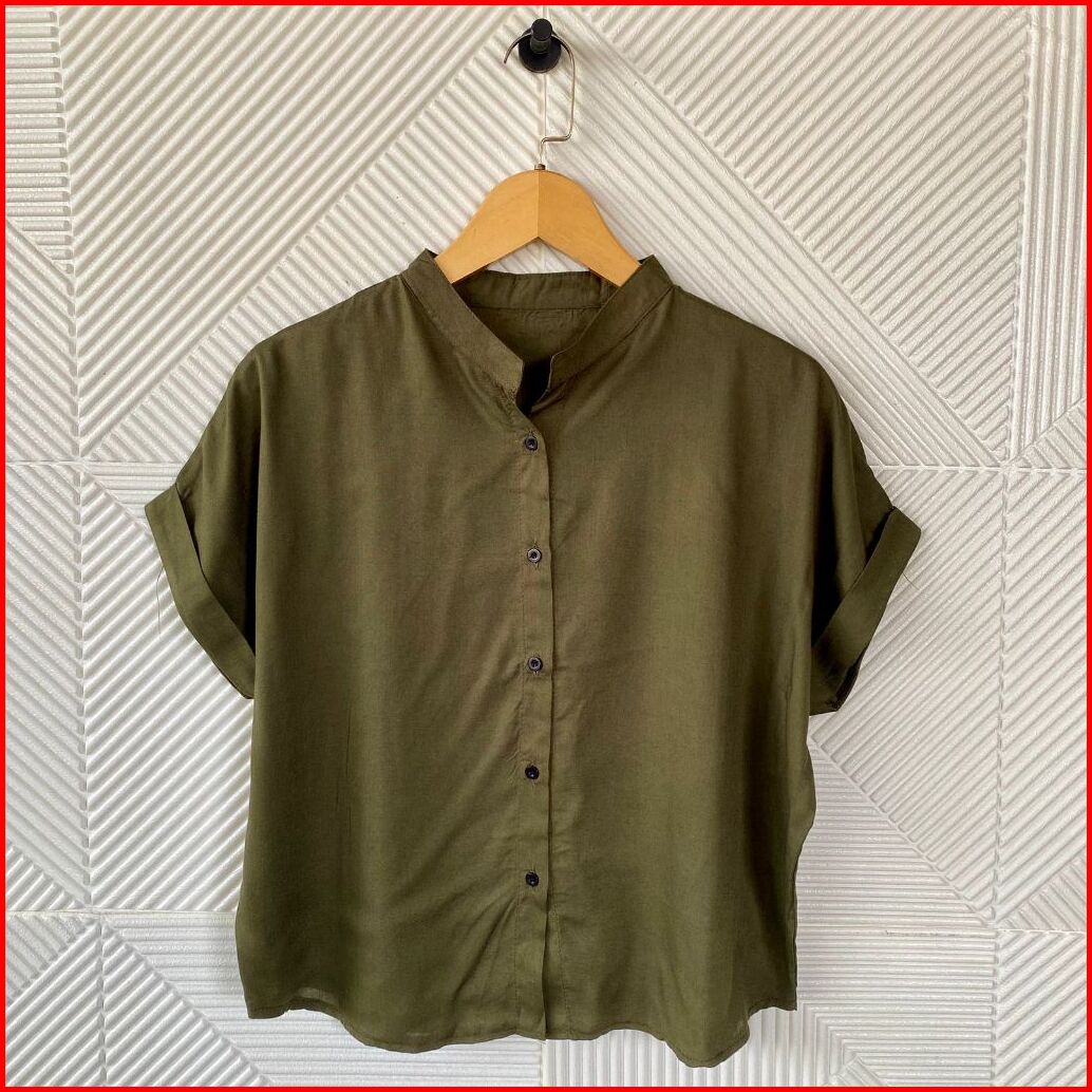Bynayla - Leizu Shirt Kemeja Kancing Kerah Shanghai Kemeja Lengan Pendek Wanita Stik Balik Polos