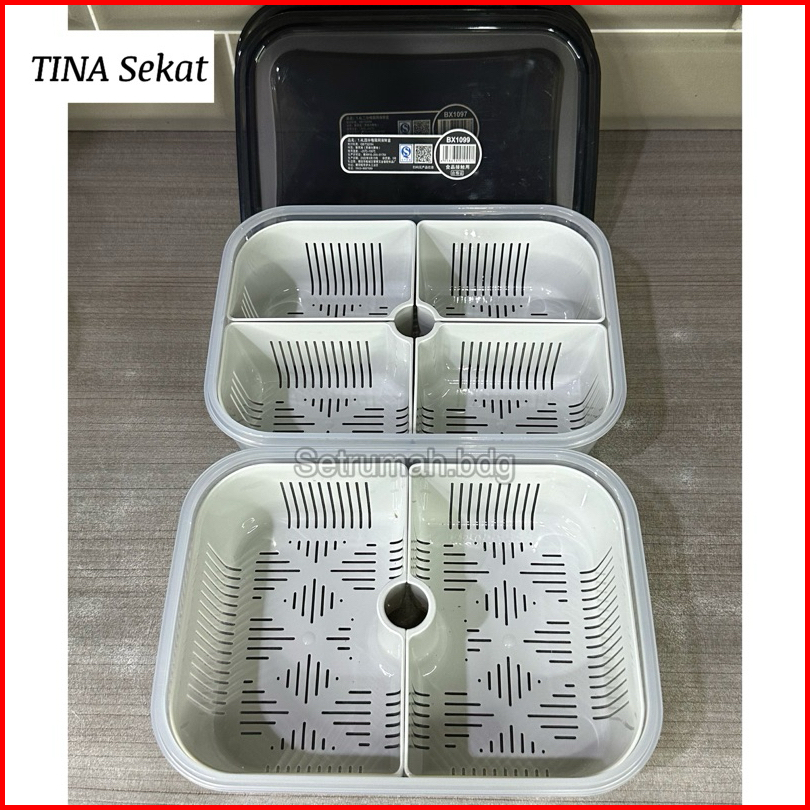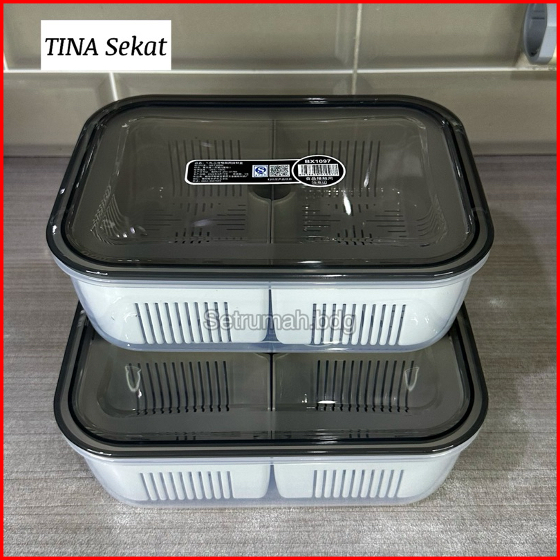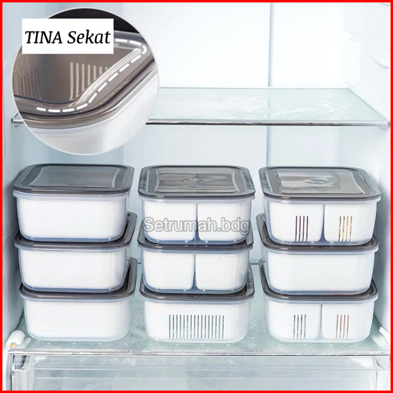 Setrumah Tina Sekat - Container Kulkas Wadah Makanan Putih Kotak Penyimpanan Makanan Sayur Toples Bening Transparan Serb