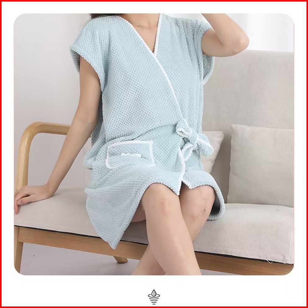 Handuk Kimono Dan Handuk Coat Dewasa Lembut Microfiber Cepat Kering Serbaguna Dengan Saku Dan Tali