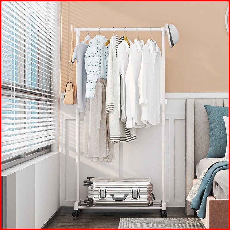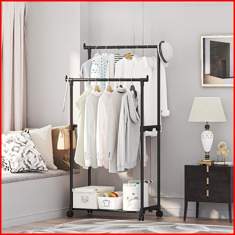 Stand Hanger Double Rak Gantungan Jemuran Baju Pakaian Single Roda 4 - Iron Material