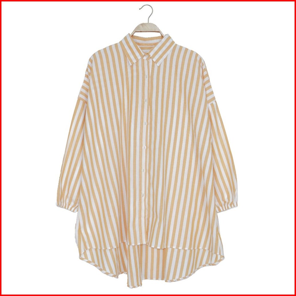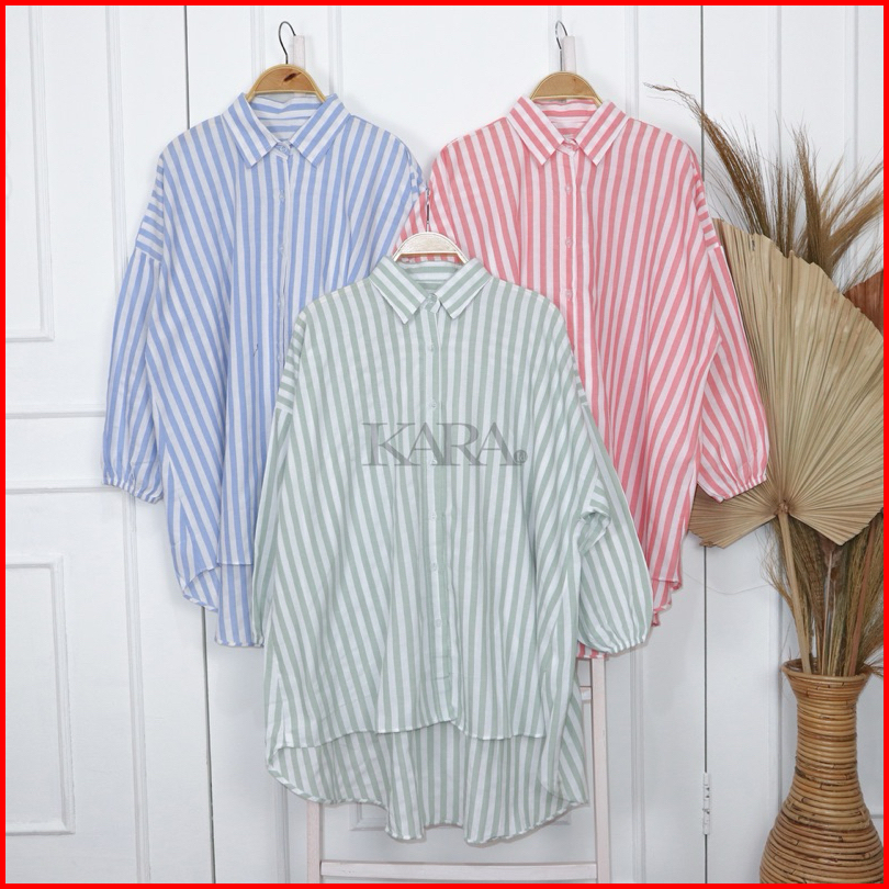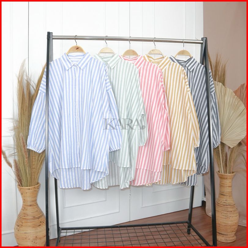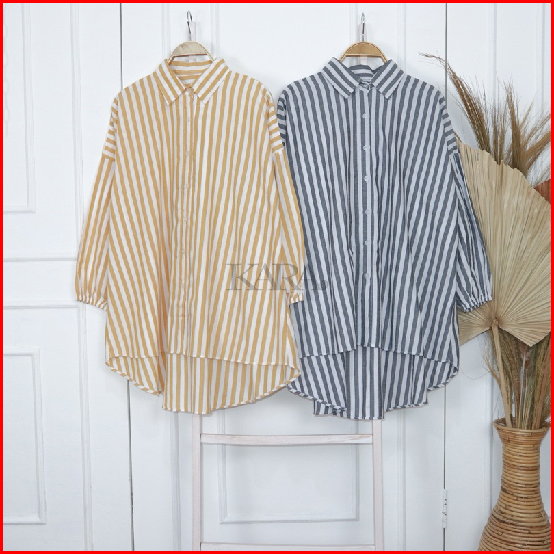 Kara.id Shifany Shirt Oversize Kemeja Wanita Salur Katun Atasan Wanita Lengan Panjang Stripe Shirt