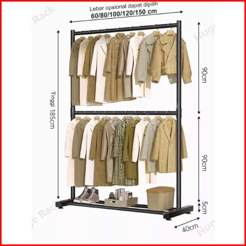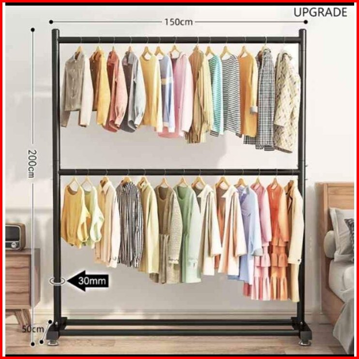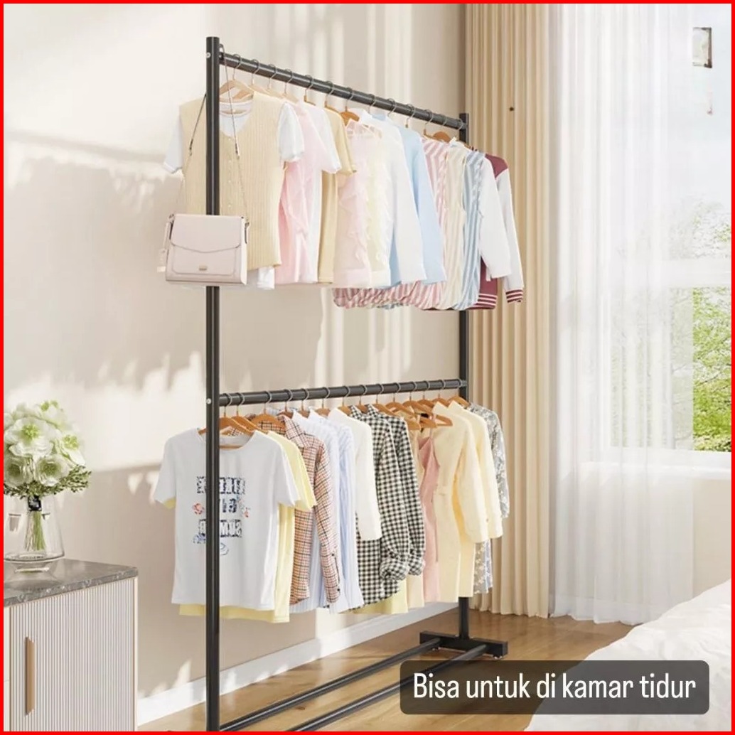 Rak Gantungan Baju 2 Susun Stand Hanger Besi Gawang Baju Portable Jemuran Pakaian Gantungan Baju Besi Alaska Midori Oxfo