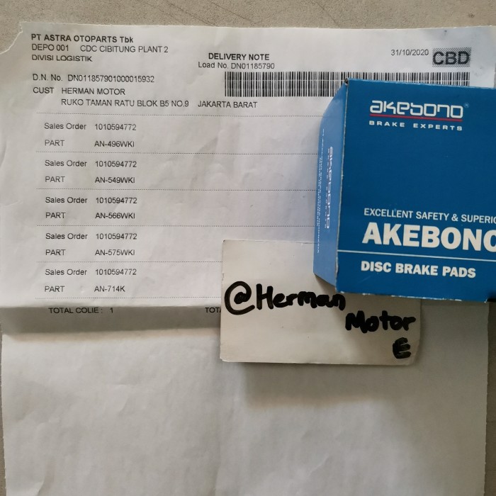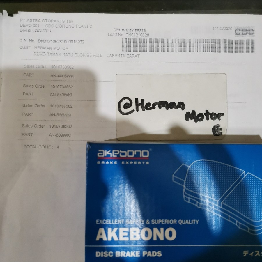 Kampas rem depan Akebono Original Mobilio Freed Jazz GE8 GK5 City GM2/6 City hatchback Brake Pad ASLI