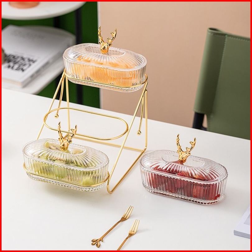 Piring Buah Multi Layer Deer Str Piring Buah Kaca Bear Ruang Tamu Tempat Buah
