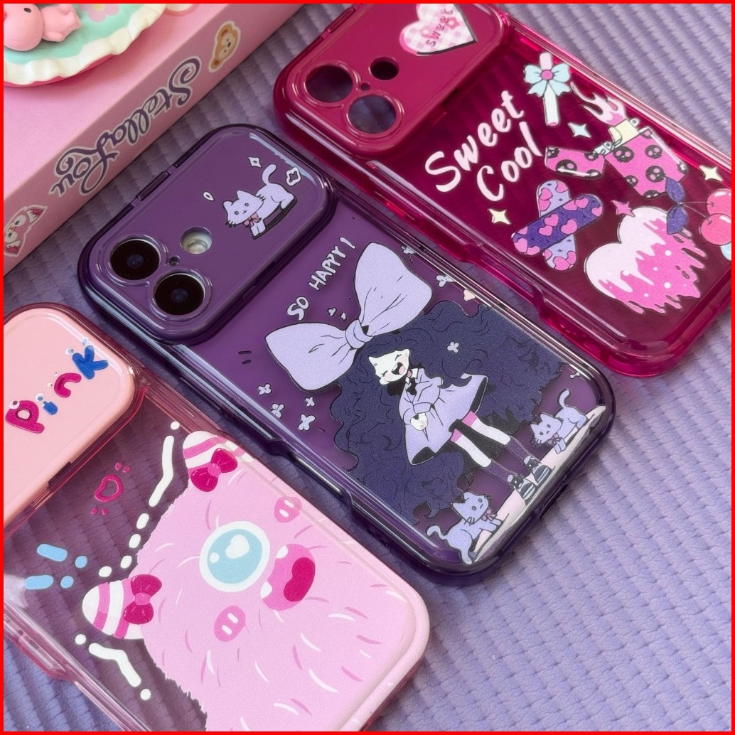 Premium Case Dino X Girls - Sweet Oval Flip Mirror Shockproof - Softcase Casing Hp Compatible For Iphone 7 8 X Xr 11 12