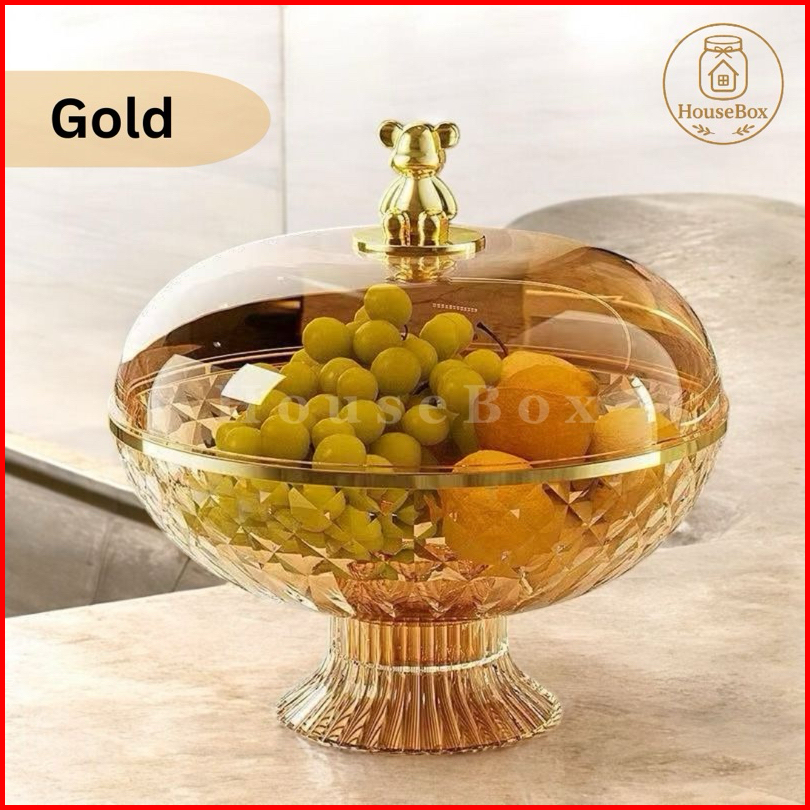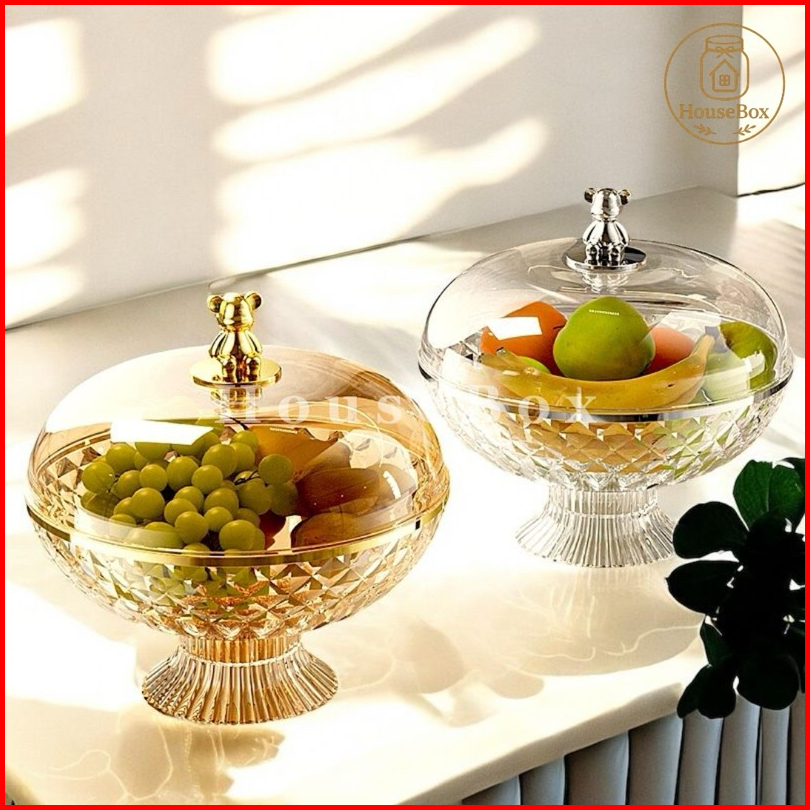 Housebox Toples Tempat Penyimpanan Buah Estetik Mewah Multifungsi Nampan Penutup Wadah Dengan Motif Beruang