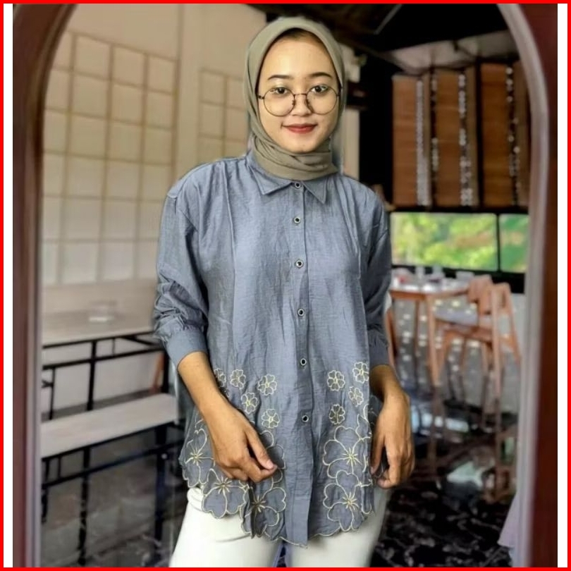Kemeja Wanita Deanda Motif Bordir Kemeja Polo Linen Motif Bunga Bordir Kekinian Blouse Korean Kekinian