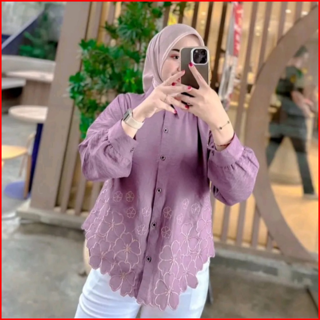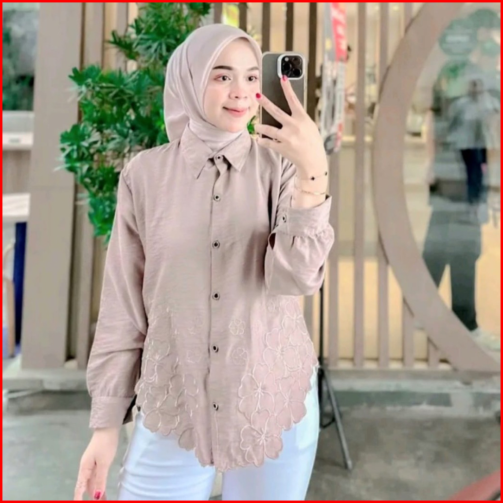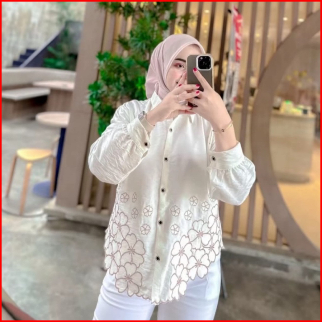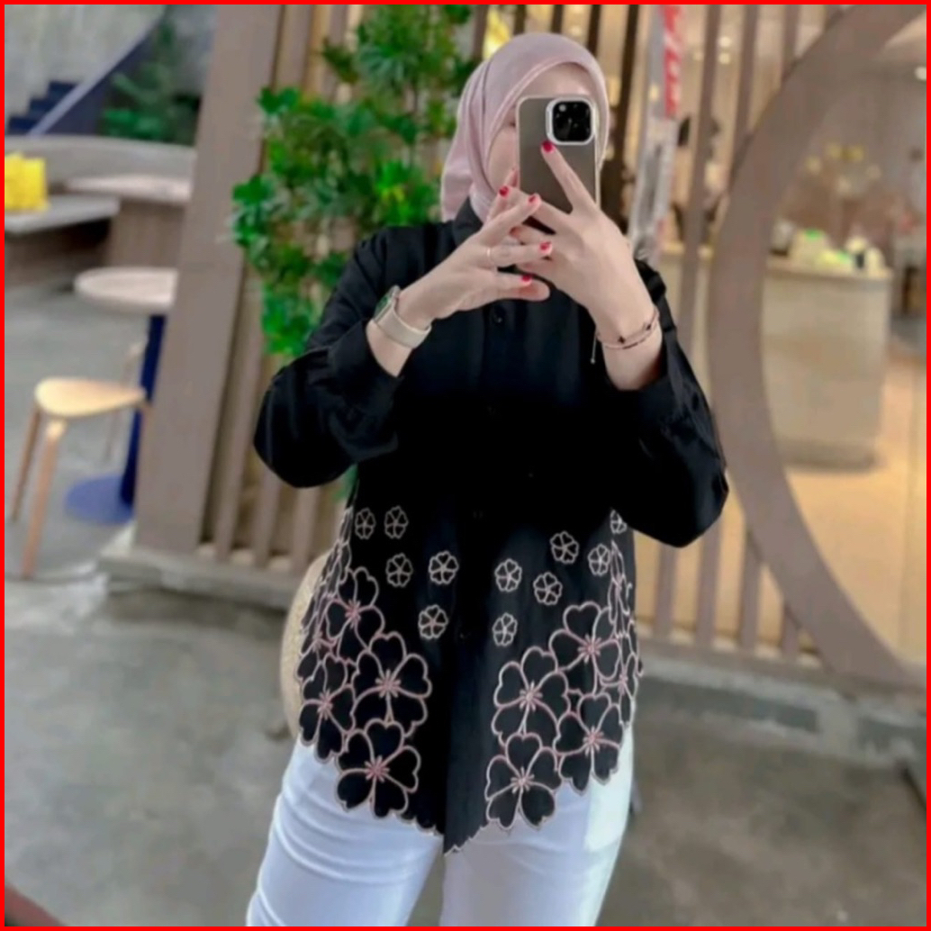 Laura Kemeja Kemeja Wanita Deanda Motif Bordir Kemeja Polo Linen Motif Bunga Bordir Kekinian Blouse Korean Style