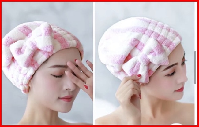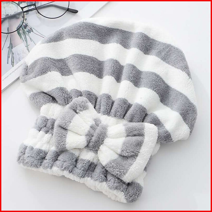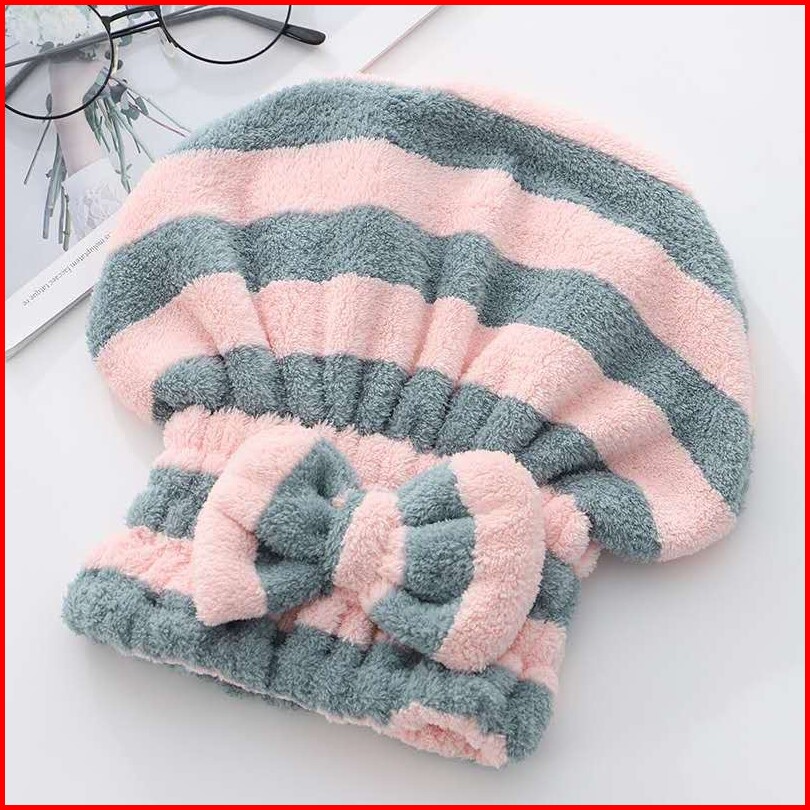 Panache Microfiber Cute Ribbon Hair Towel Shower Cap Handuk Keramas
