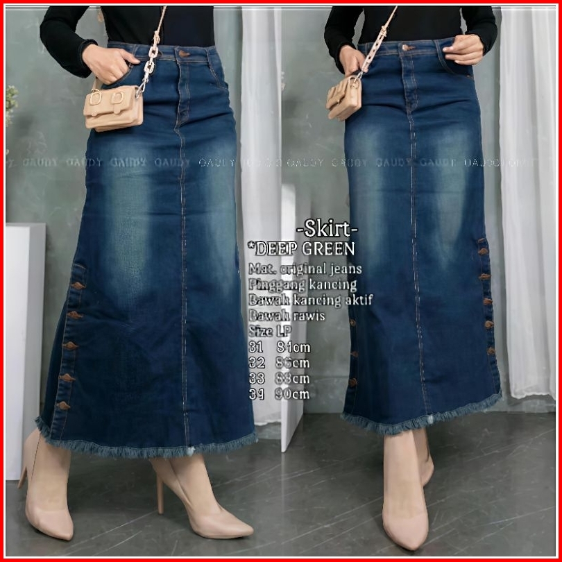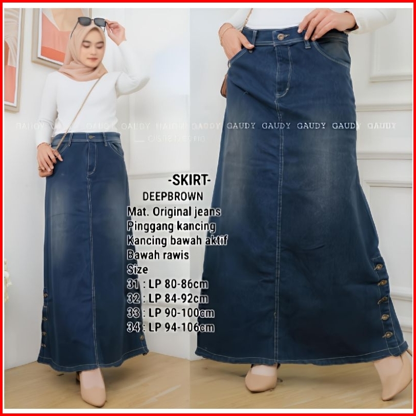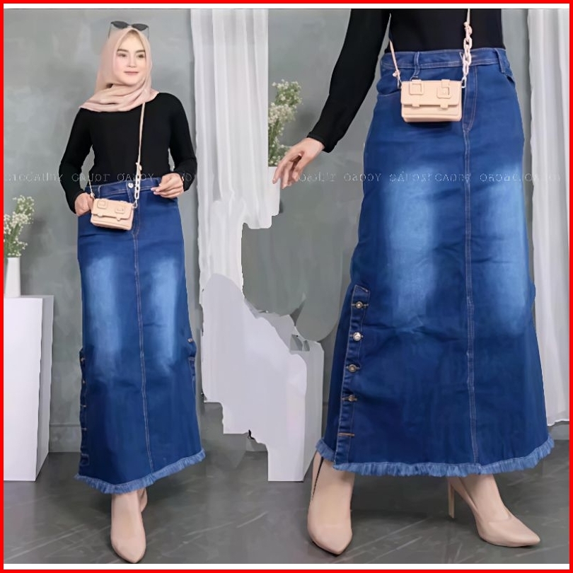 Rok Jeans Kancing Pinggir Wanita Premium Skirt Denim Panjang Terbaru Korean Style Rok Jeans Polos