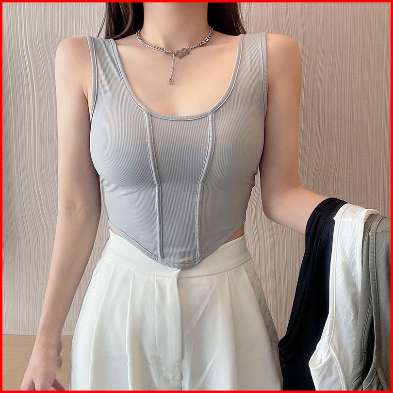 Ninabobo Br213 Tanktop Wanita Korean Fashion Pakaian Atasan Bra Crop Top Fitness Atasan Olahraga