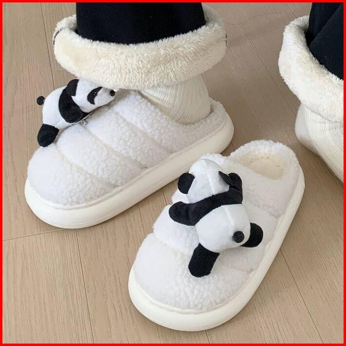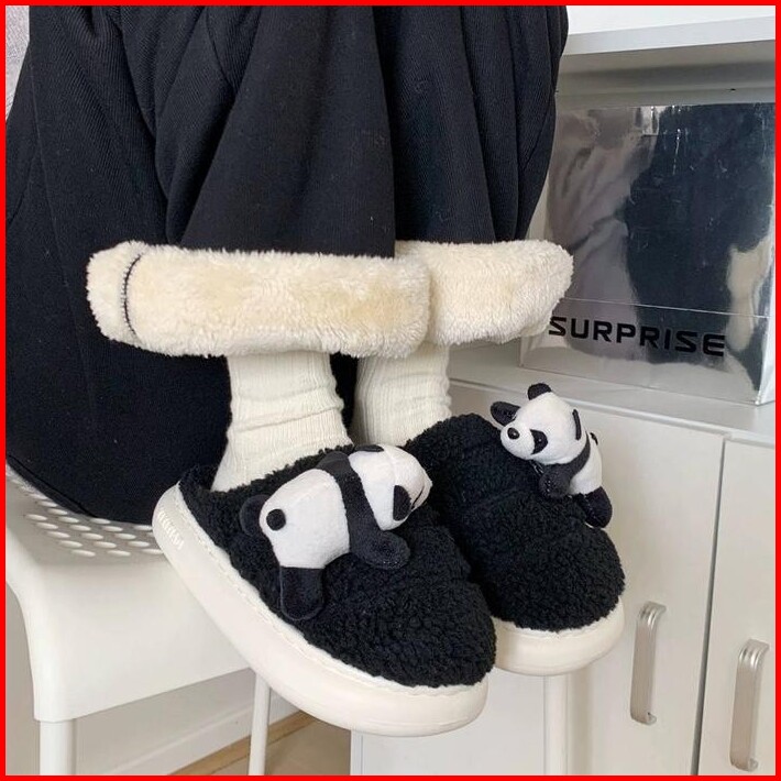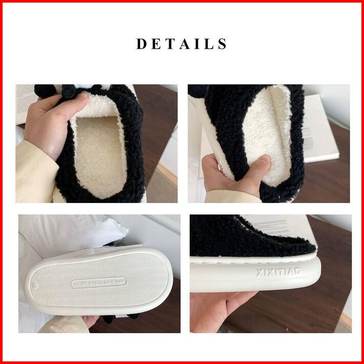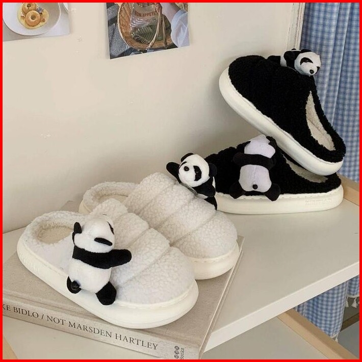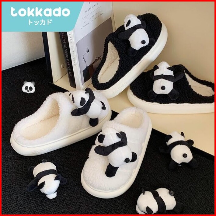 Tokkado Tokio Panda Sandal Rumah Premium Hitam Putih Bulu Boneka Empuk Lucu