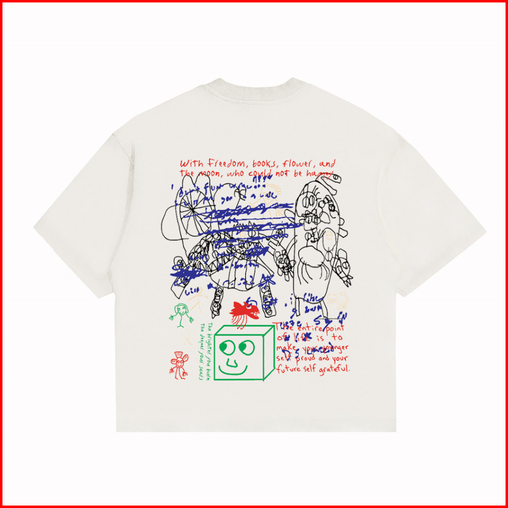 Onoma Katun Bangkok - Boxy Oversized Tshirt Doodle Beast White - Kaos