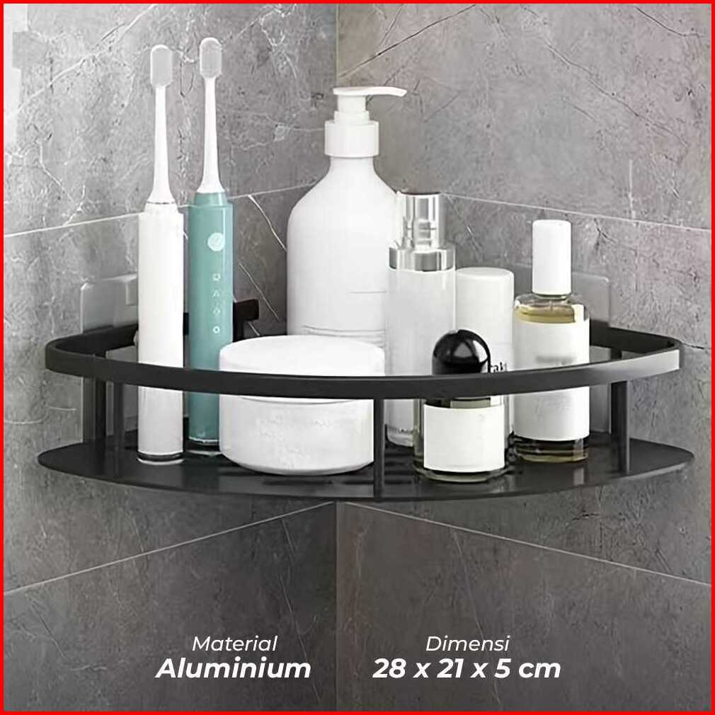 Taffhome Rak Kamar Mandi Aluminium Triangular Bathroom Corner Shelf - Rg2a
