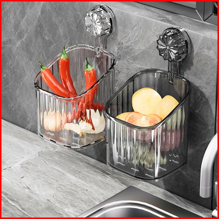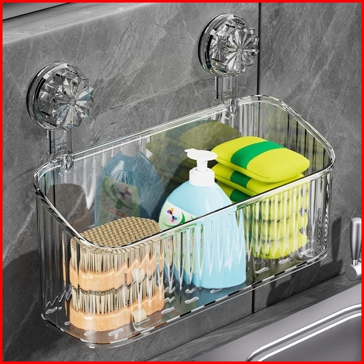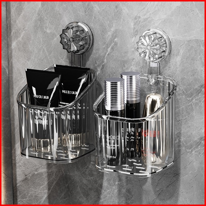 Rak Gantung Kamar Mandi Akrilik Aesthetic Bergaris Tempel Dinding Organizer Storage