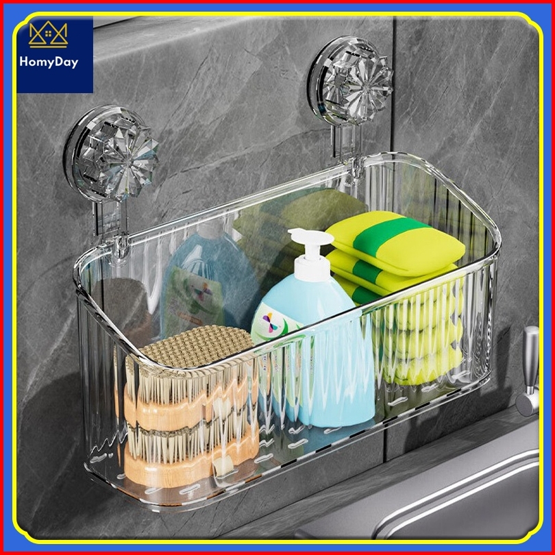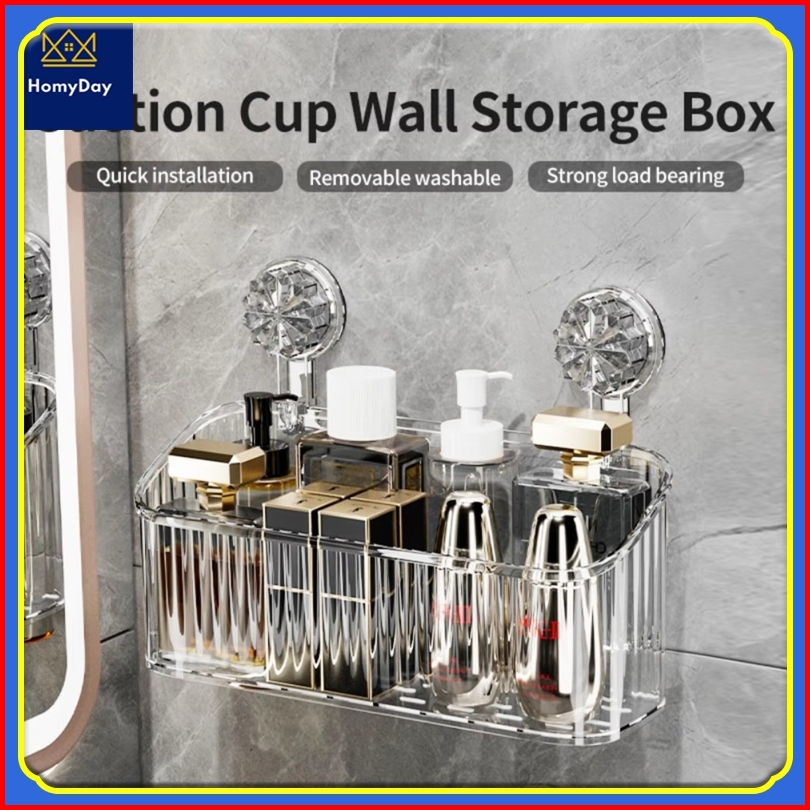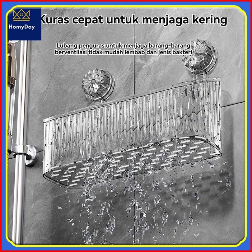 Tahan Lama Tidak Perlu Melubangi Penyerapan Vakum Rak Kamar Mandi Akrilik Organizer Dinding Bergaris Rak Gantung Kamar M