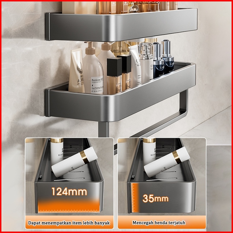 Rak Kamar Mandi Aluminium Tempel Dinding Instalasi Bebas Bor Rak Kosmetik Bathroom Drain Rack