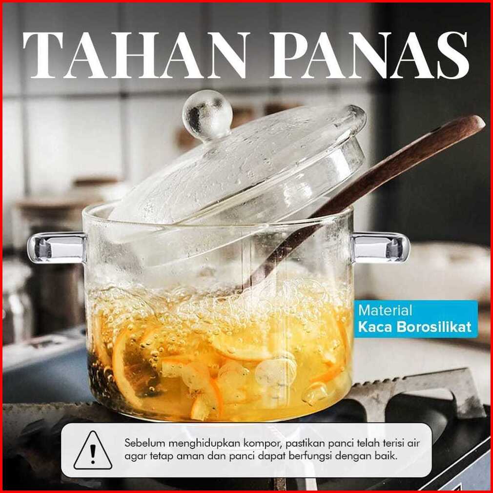 Panci Kaca Minimalis Elegan Design Tahan Panas Glass Cooking Pot Borosilicate