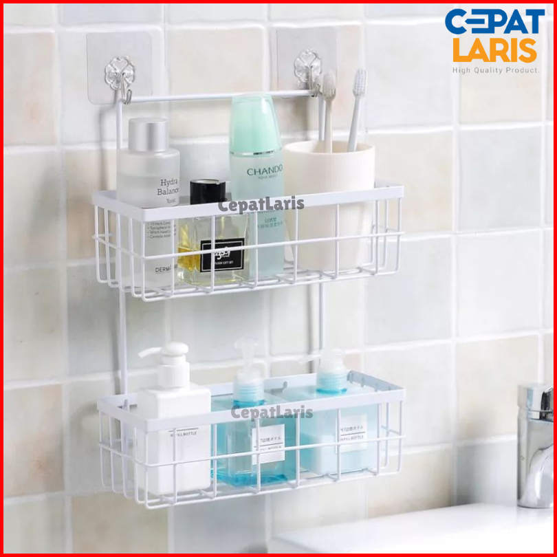 Cl Rak Kamar Mandi 2 Tingkat Rak Dapur 2 Tingkat Tempel Dinding Anti Karat Rak Tempat Penyimpanan Serbaguna