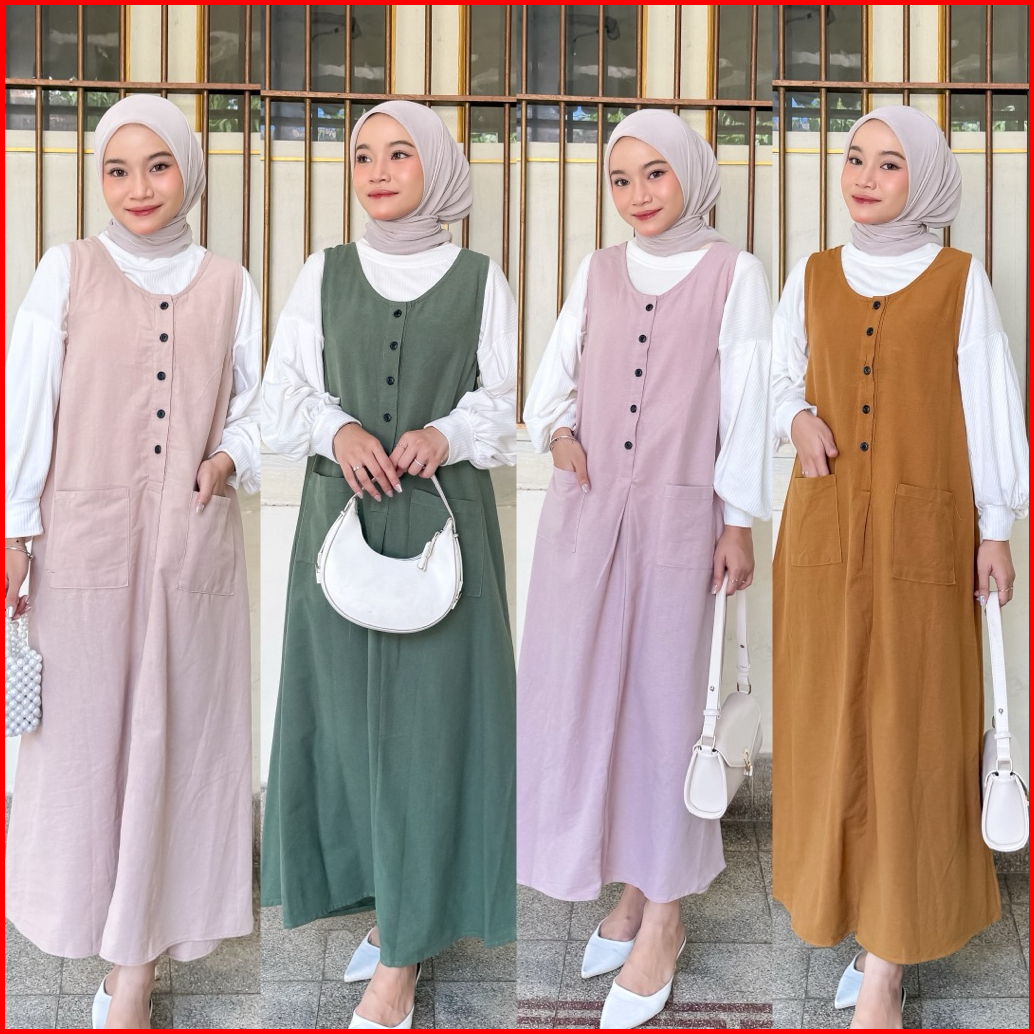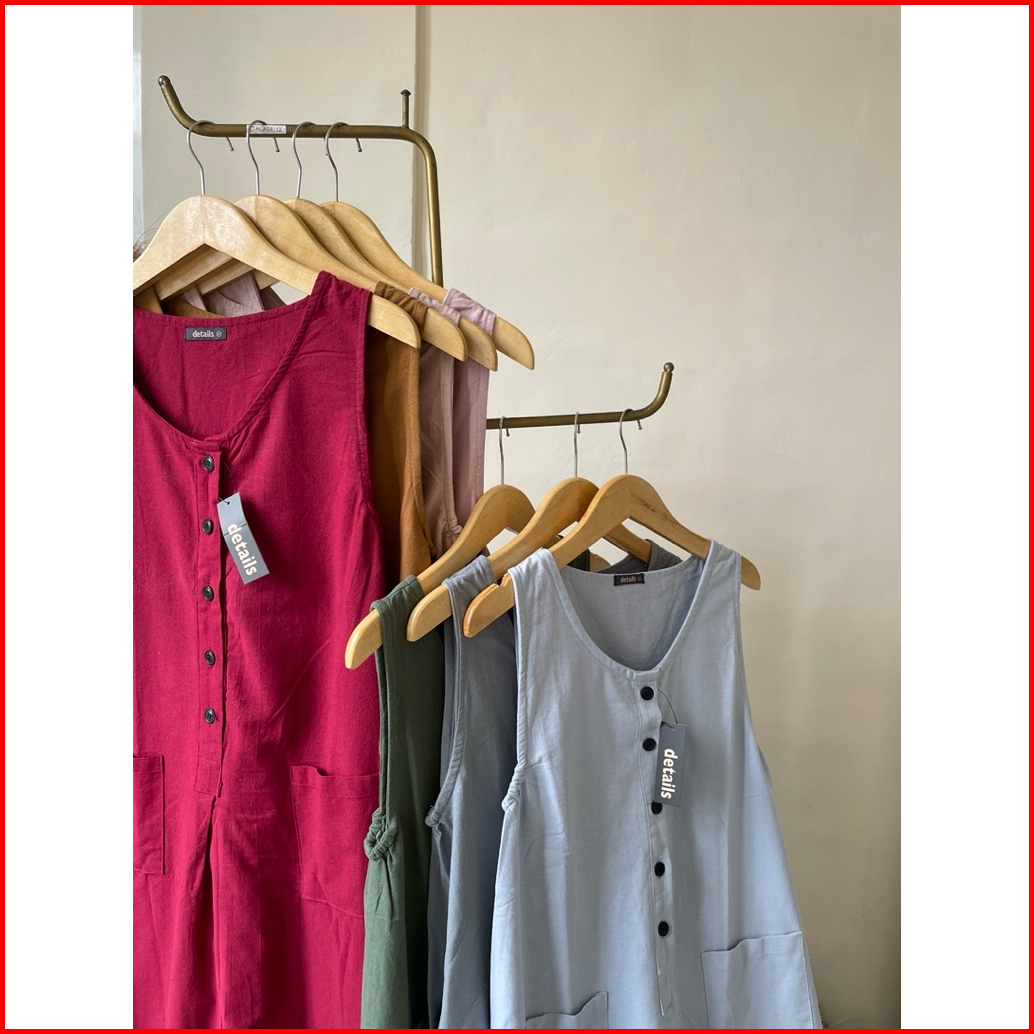 Overall Details Overall Dress Polos Bahan Linen Premium