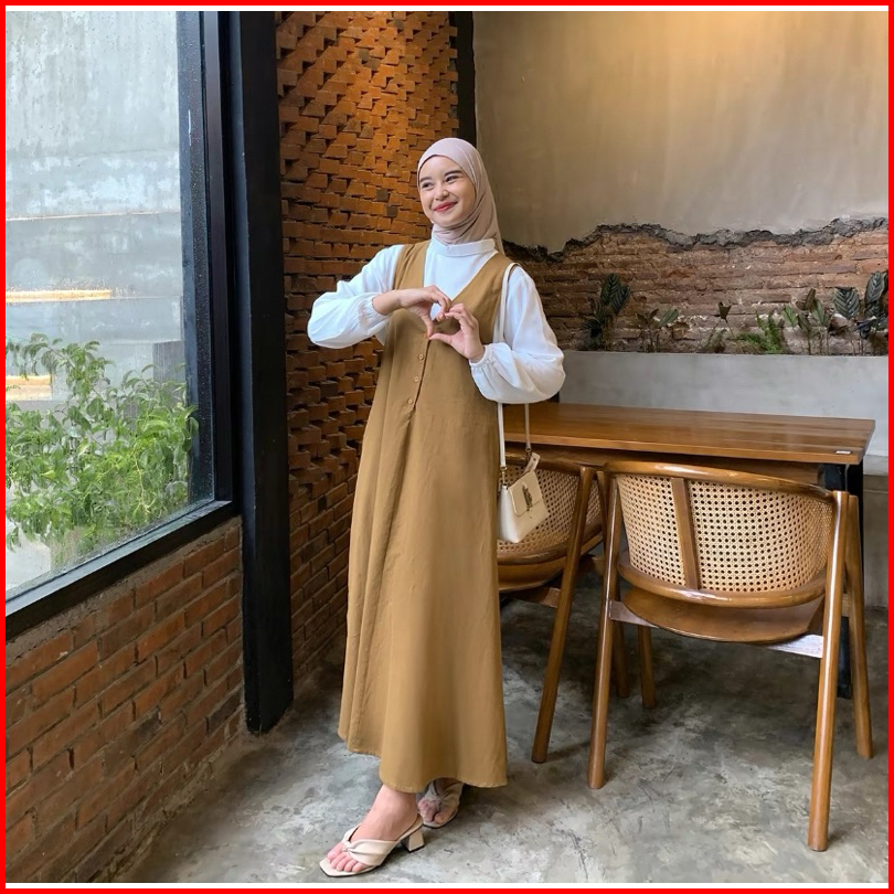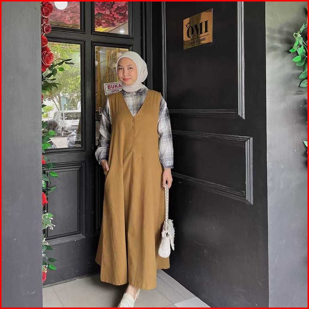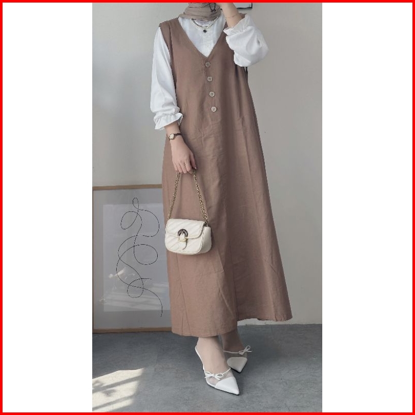 Lurry Overall Long Dress Linen Twill V Linen Tanpa Lengan Outer