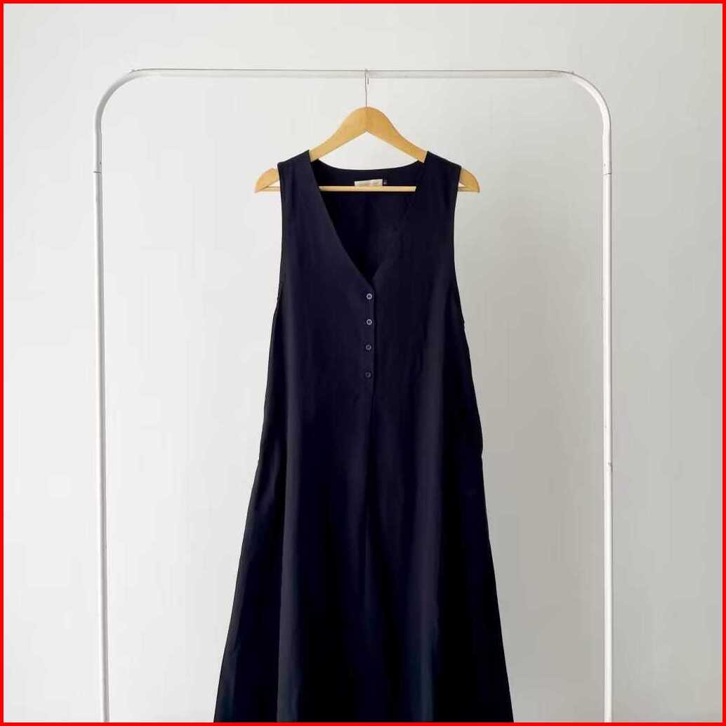 Lurry Overall Long Dress Linen Twill V Linen Tanpa Lengan Outer