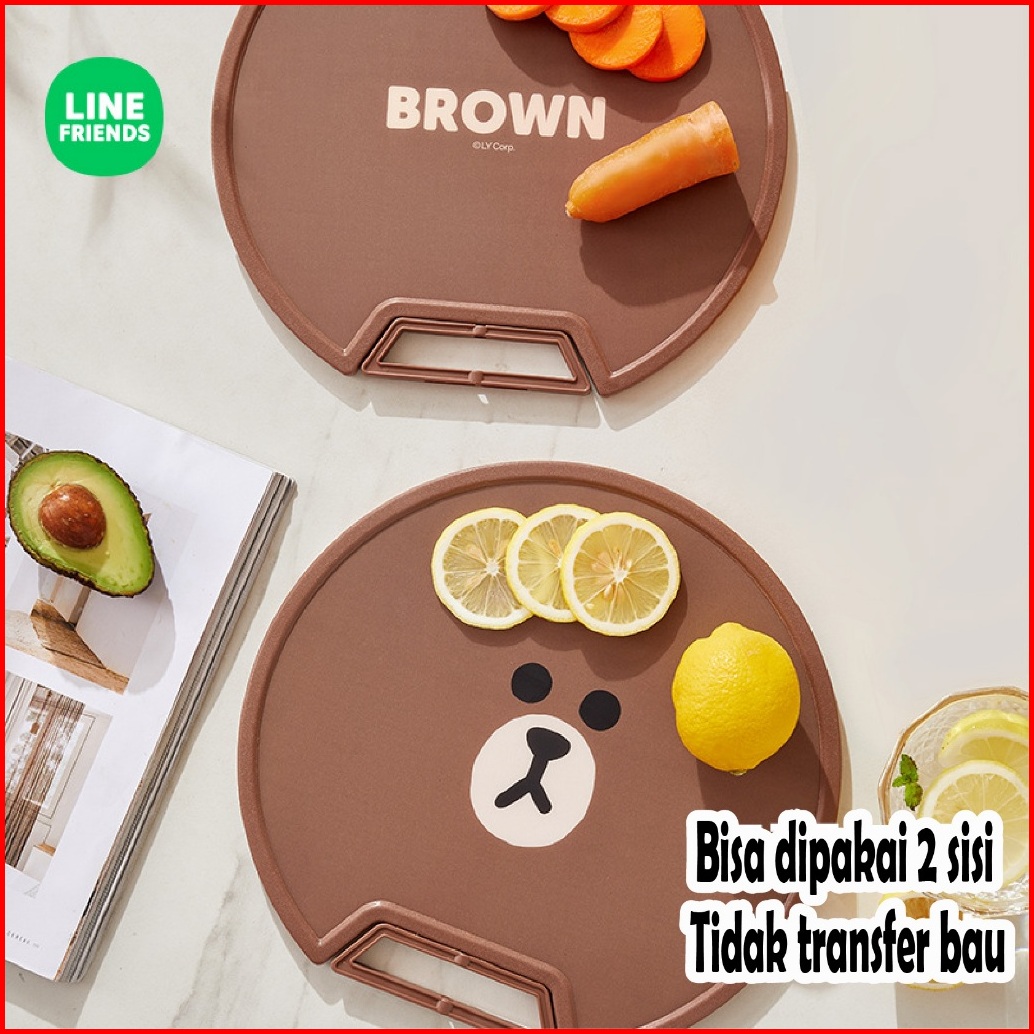 Line Friends - Talenan Bulat Anti Jamur Multifungsi Dua Sisi Motif Brown Bear Cutting Board