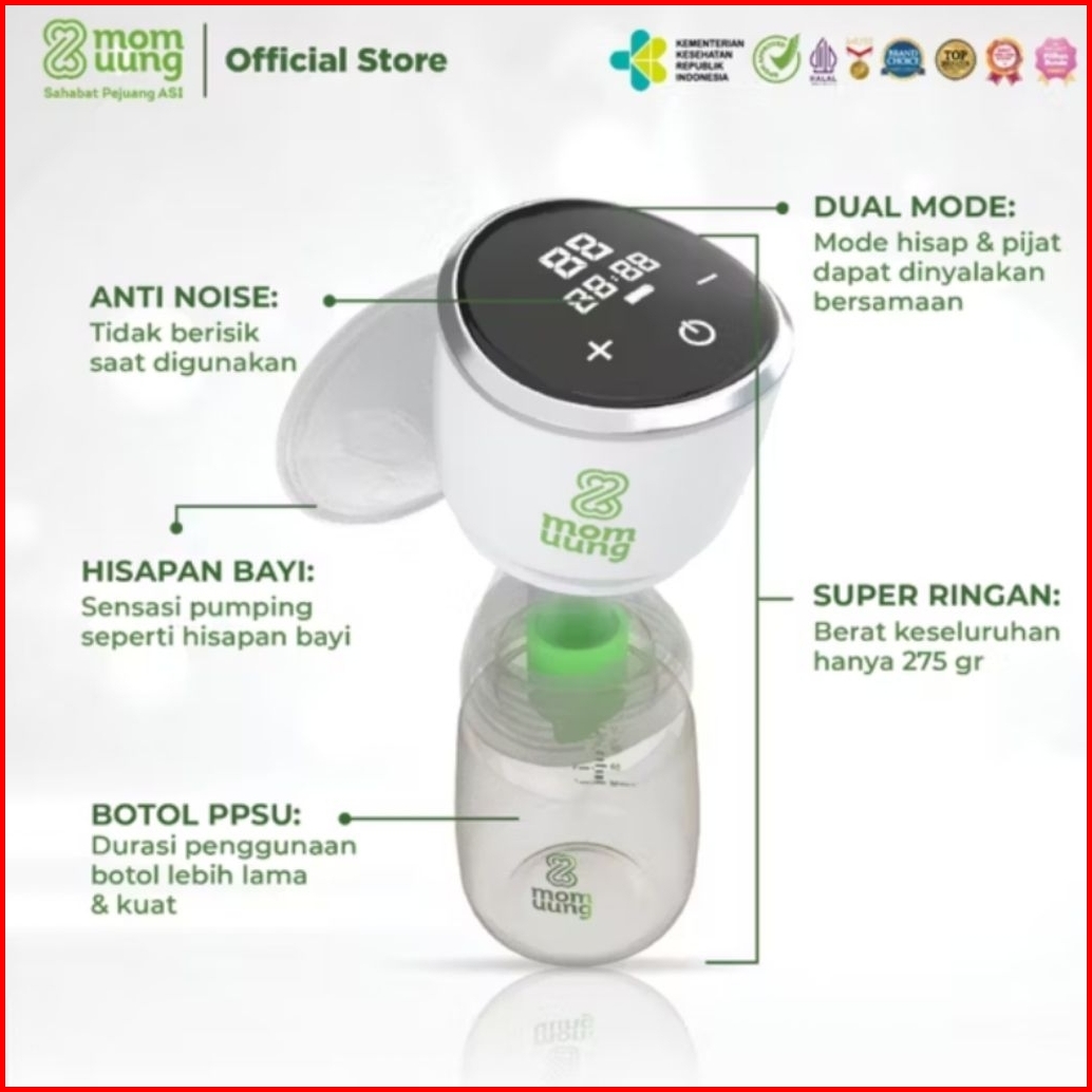 Mom Uung - Pompa Asi Portable Elektrik Breastpump Portable Dual Mode Anti Noise Hospital Grade Sensasi Pumping Seperti H