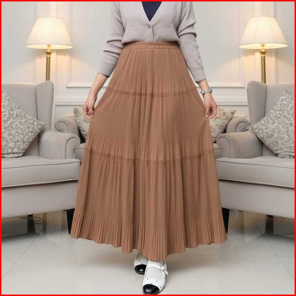 Rok Plisket Super Mayung Lidi Cabang Susun 3 Rok Wanita - Rok Flare Pleats Skirt Ruffle - Layer Skirt Hyget Premium Plea