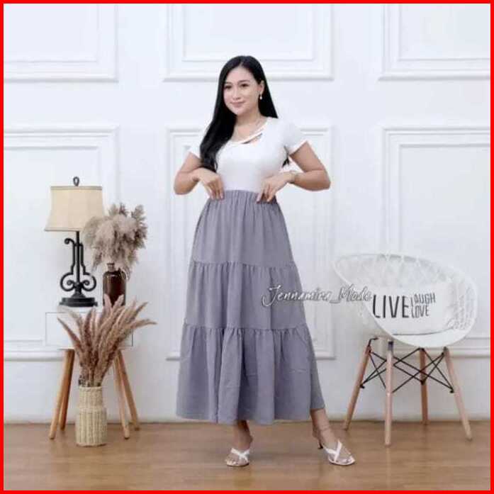 Rok Rempel Ceruty Babydoll Premium Rok Susun Ruffle Maxi Skirt Panjang