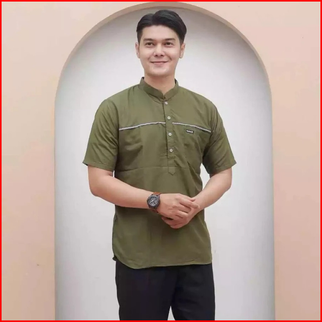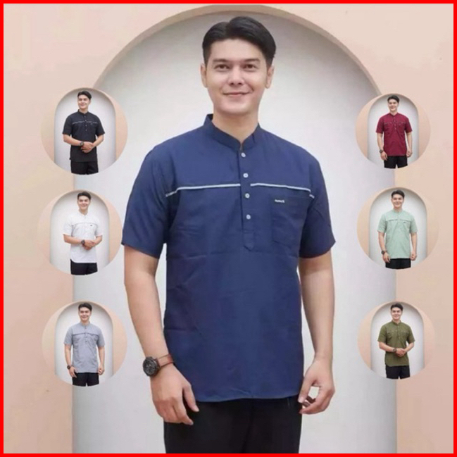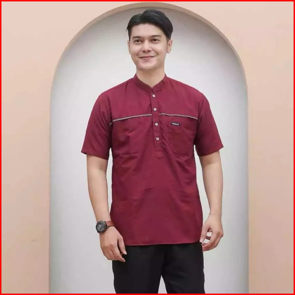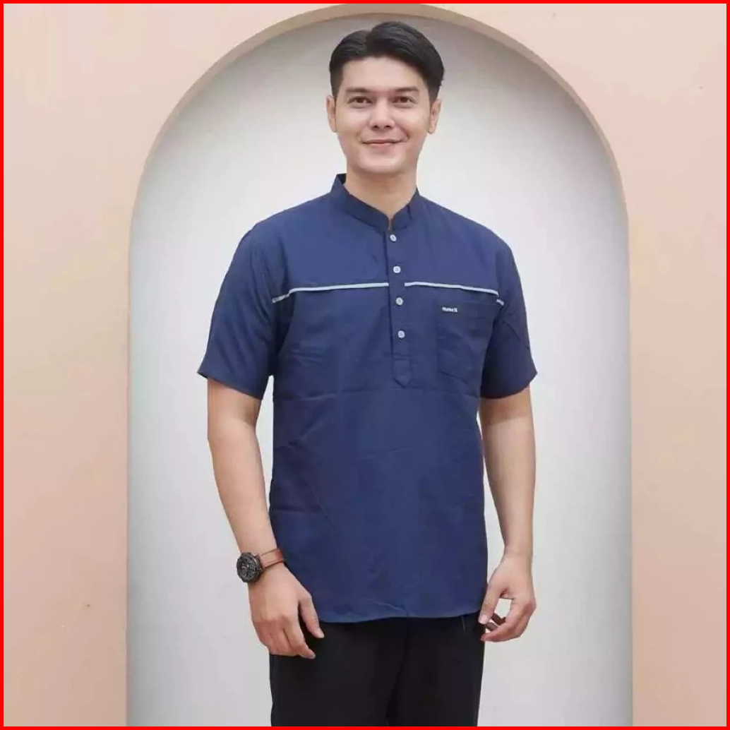 Baju Koko Kurta Motif Garis Dada Lis 1 Full Katun Lengan Pendek