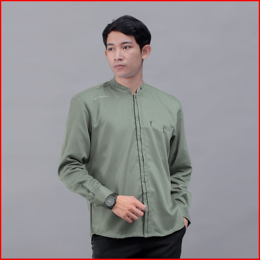 Baju Koko Pria Elrumi Lengan Panjang Motif Antasena Warna Sage