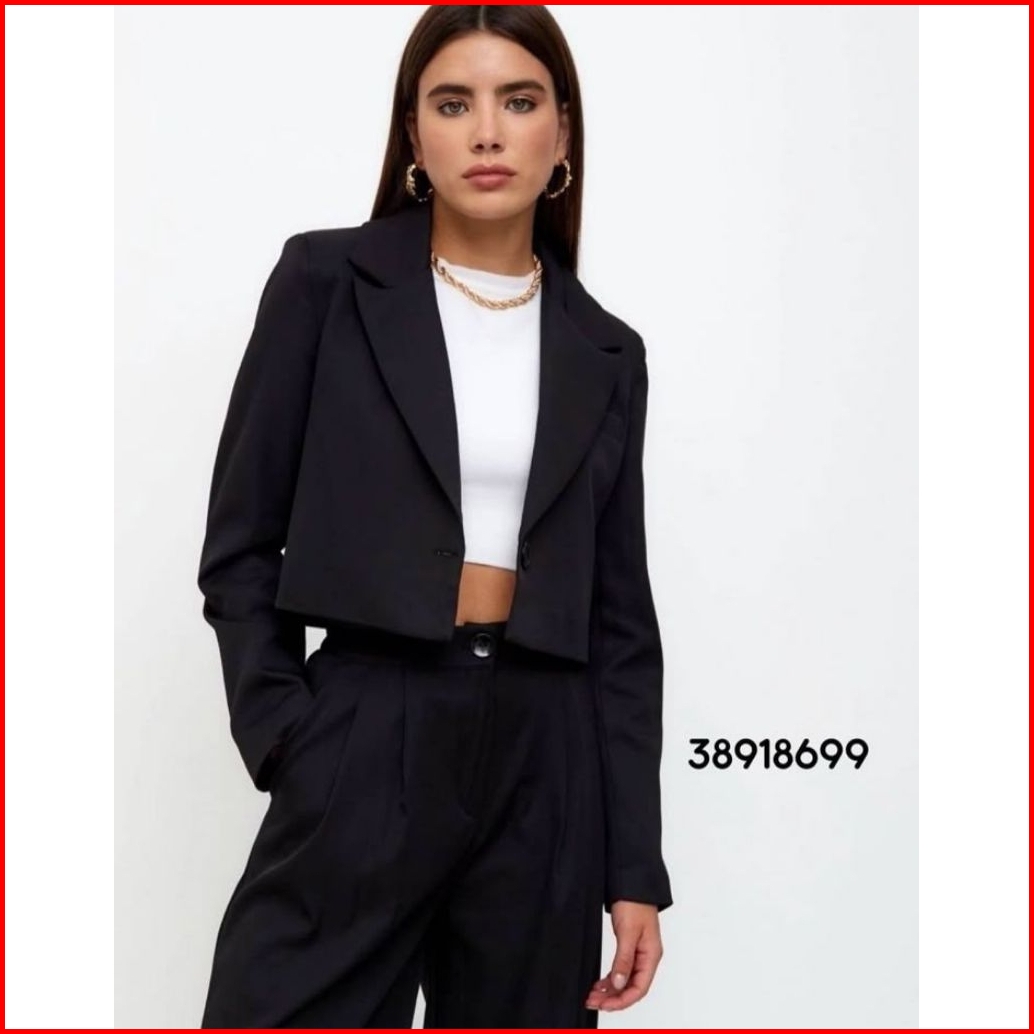 Lexa Blazer Crop Lengan Panjang Atasan Wanita Outer Semi Woll Kekinian