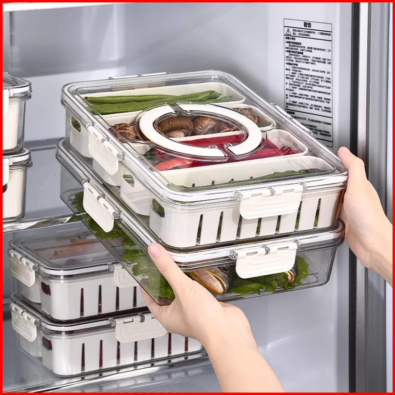 Badgewadah Penyimpanan Makanan Kulkas Untuk Buah-buahan Dan Sayuran Dengan Filter Dan Tutup Transparan Kontainer Kulkas