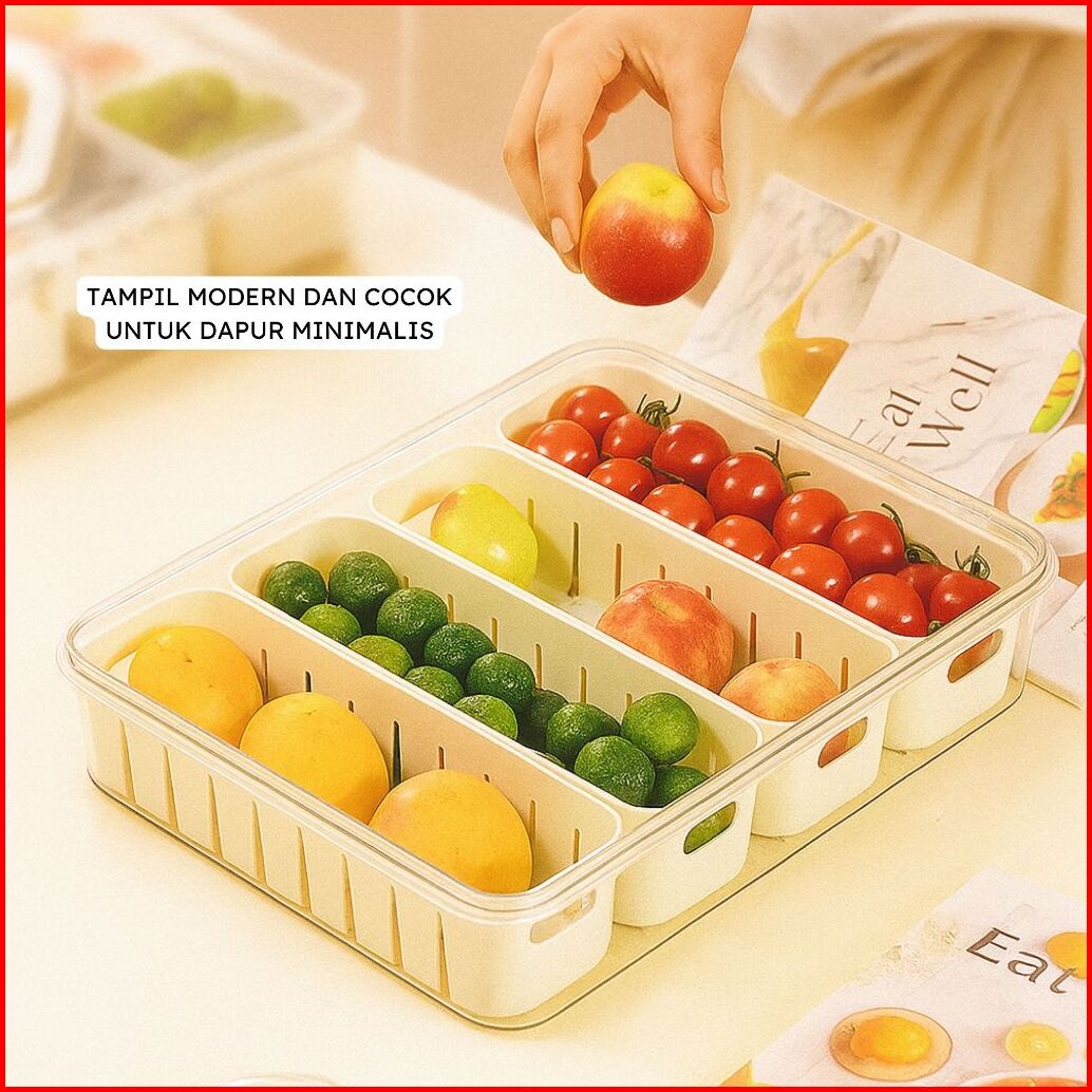 Delaney Kotak Food Container 4 Sekat - Tempat Simpan Buah Sayur Segar Awet Di Kulkas