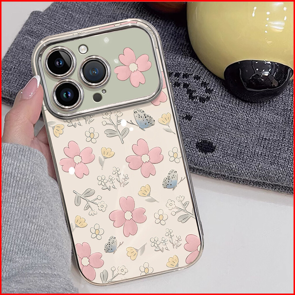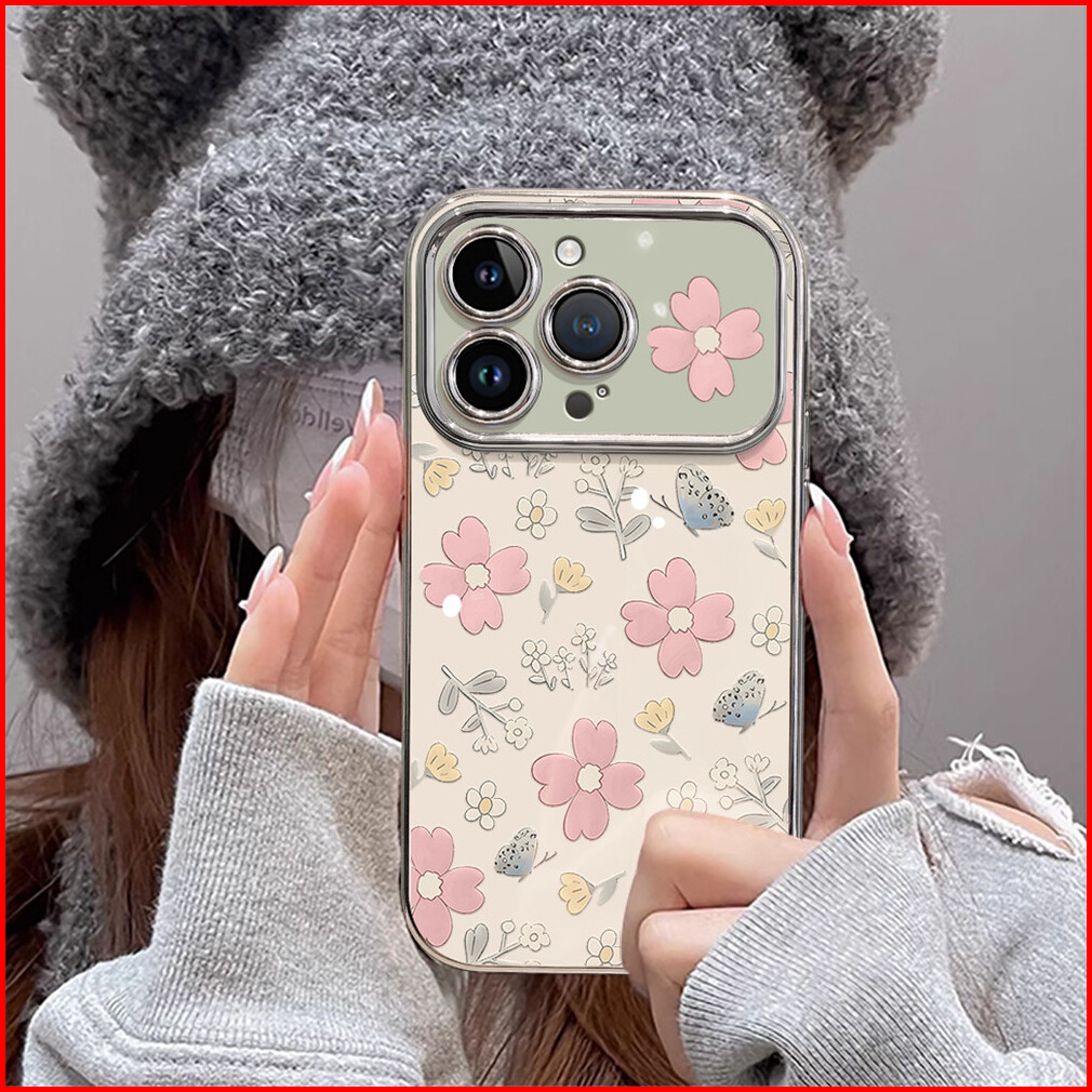 Casing Hp Untuk Iphone 16 11 12 13 14 15 Pro Xs Xr 15 14 Plus Pro Max 7 8 6 7 8 6 Xs Max Casing Dengan Bunga Pink Dan Ku