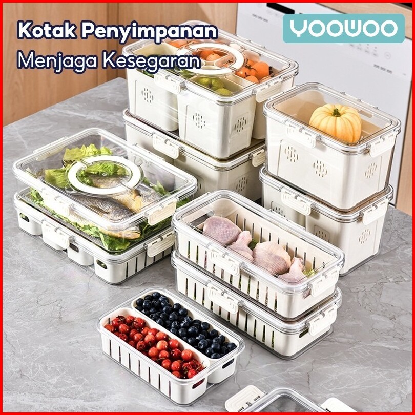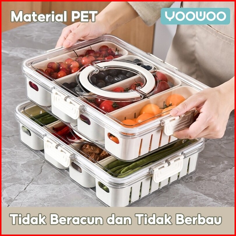 Yoowoo Food Container Kulkas Wadah Kotak Makan Plastik Pet Tebal 8 4 2 Slot Storage Box Makanan Lunch Box Box Bumbu Dapu