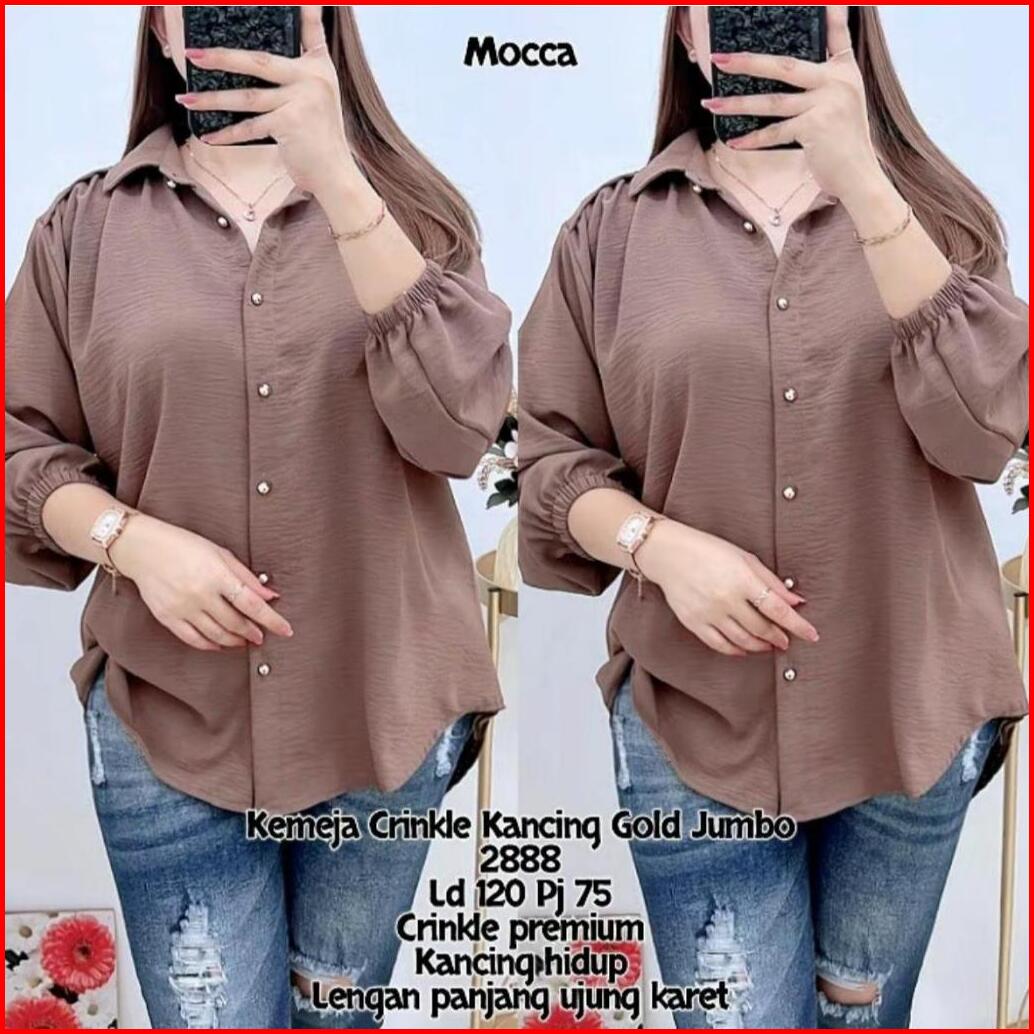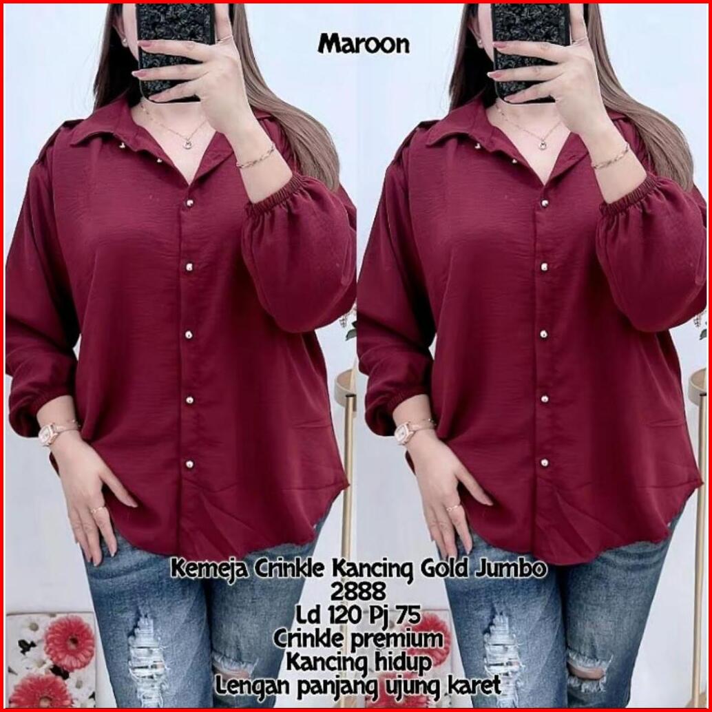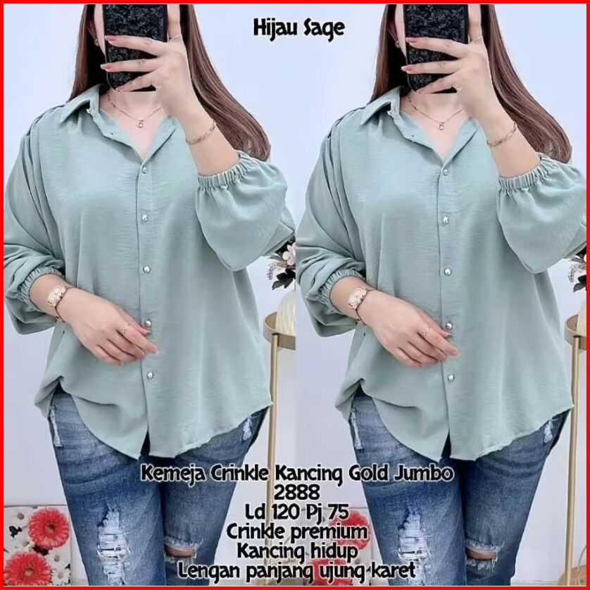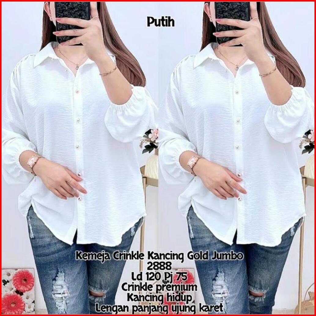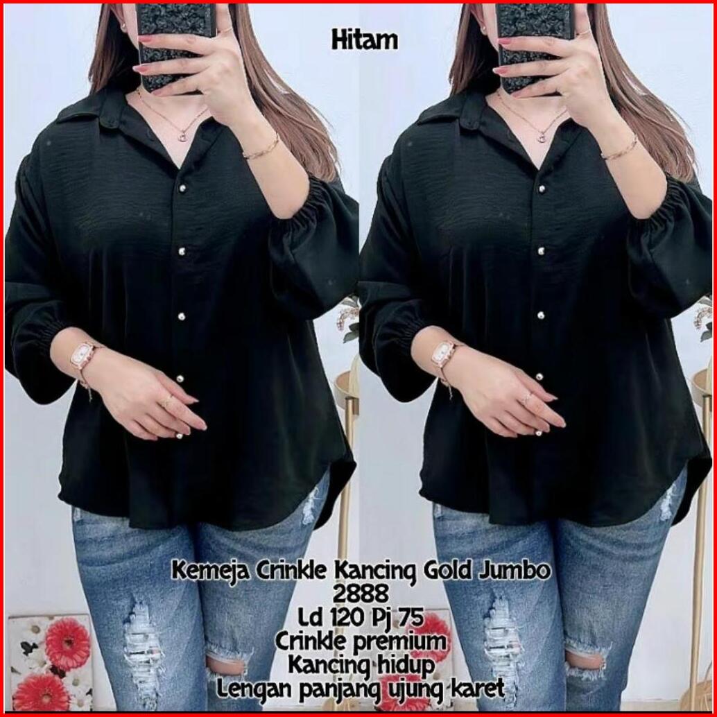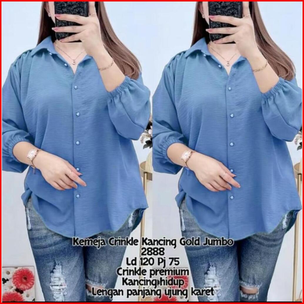 Murah Nampol Kemeja Crinkle Polos Wanita Jumbo Kancing Premium