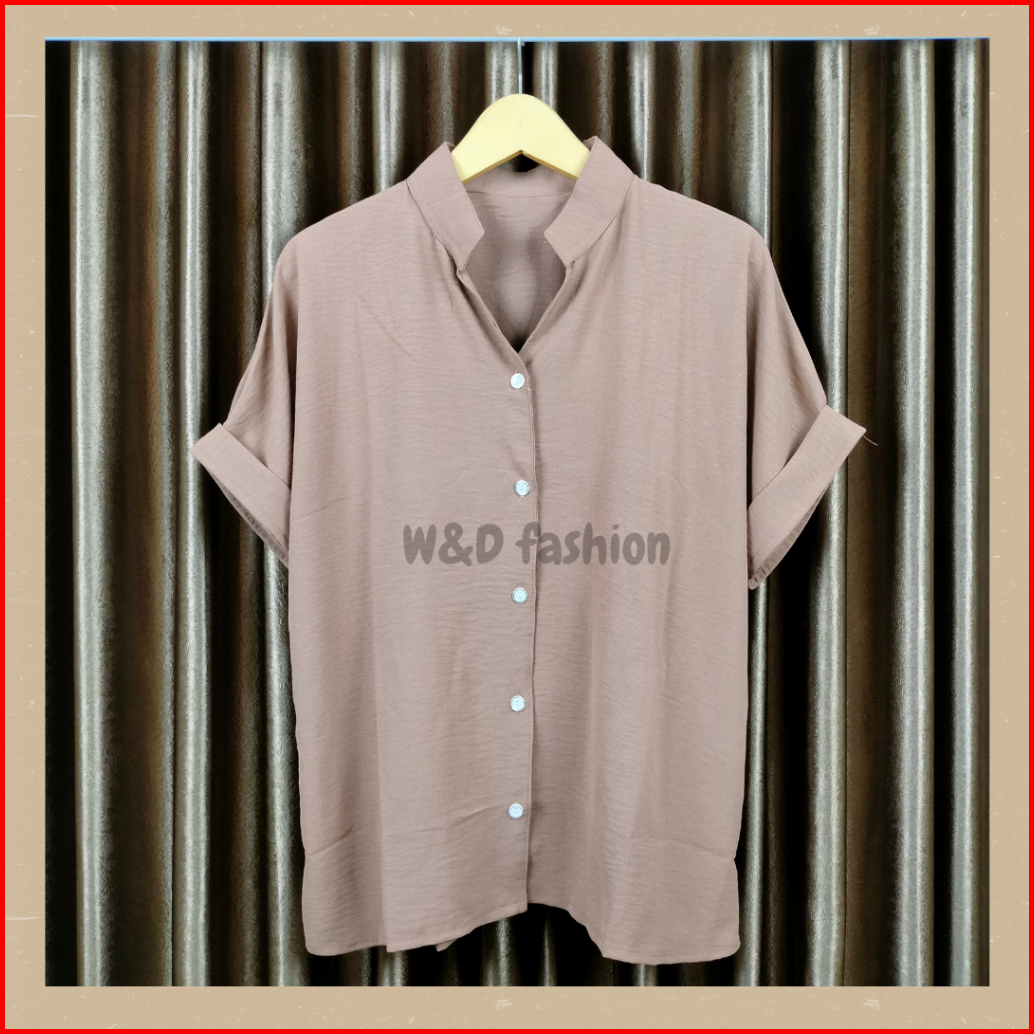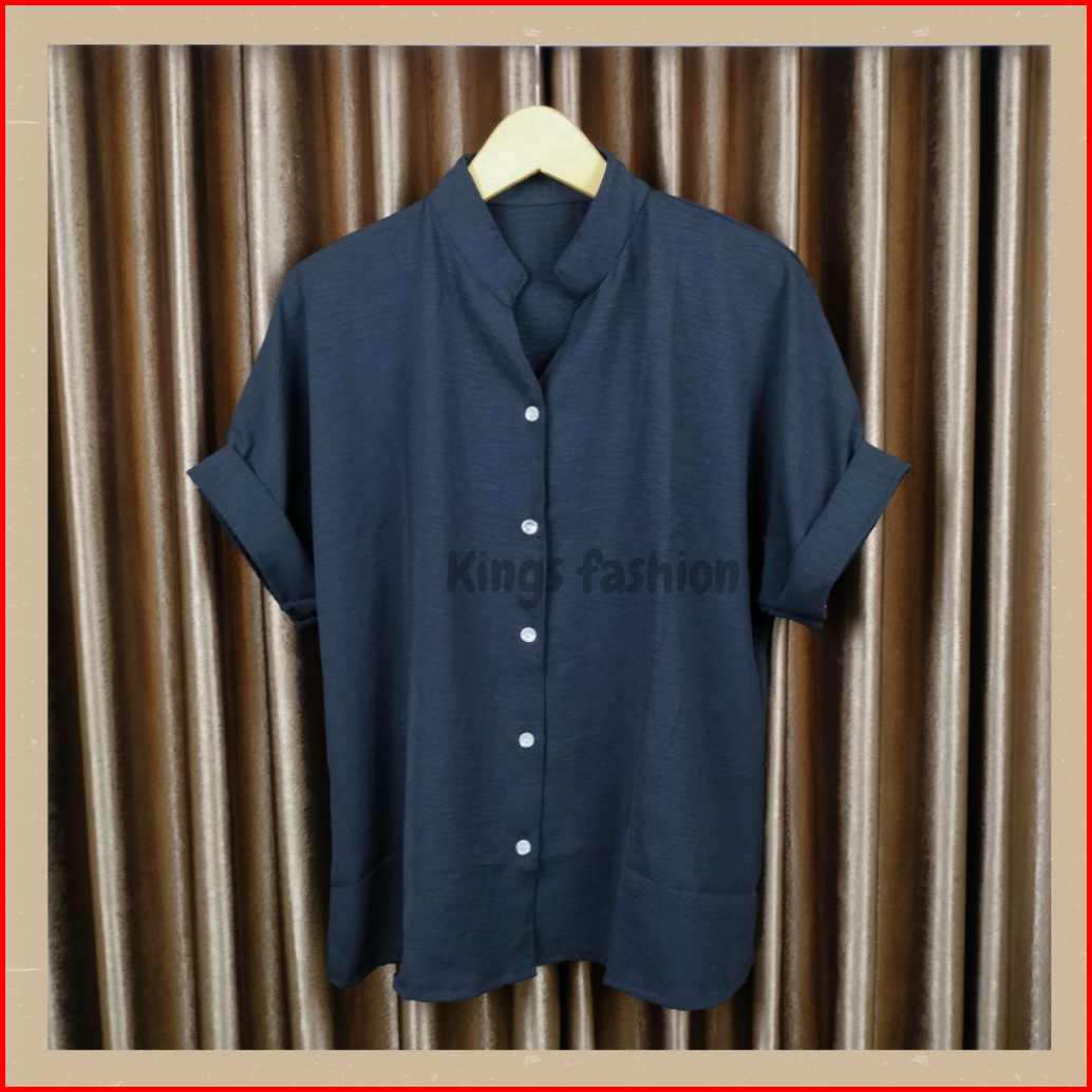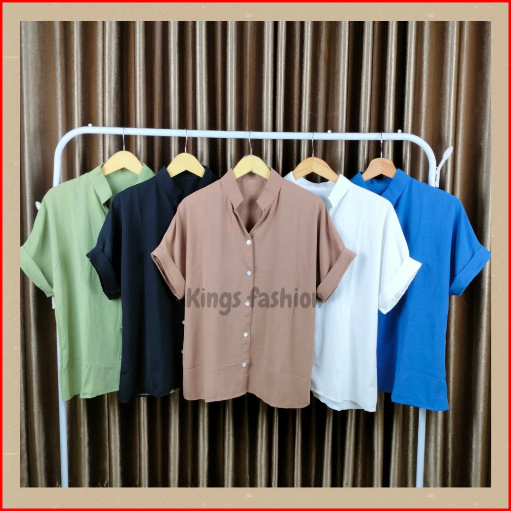 Kemeja Polos Wanita Lengan Pendek Oversize Crincle Airflow Premium Putih Hitam