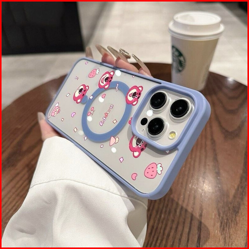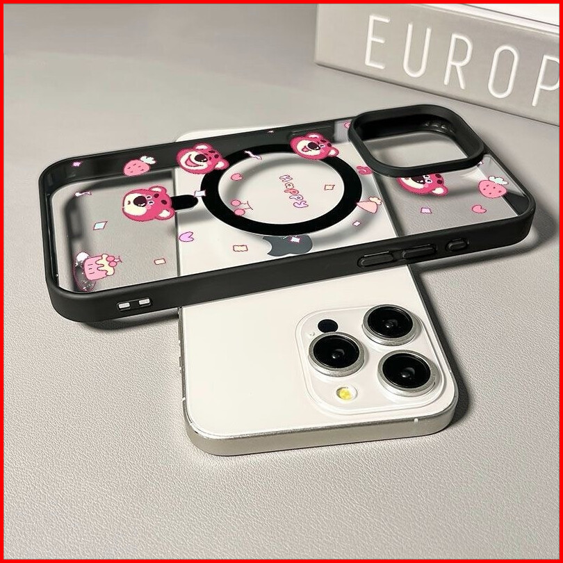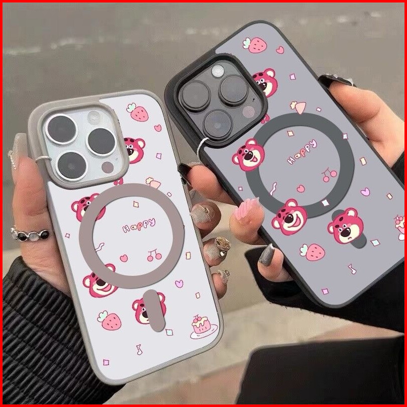 Juni Case Iphone 15 Beruang Stroberi Dengan Magnet Casing Ponsel Cocok Untuk Iphone 11 11promax Softcase Macaron 12 13 1