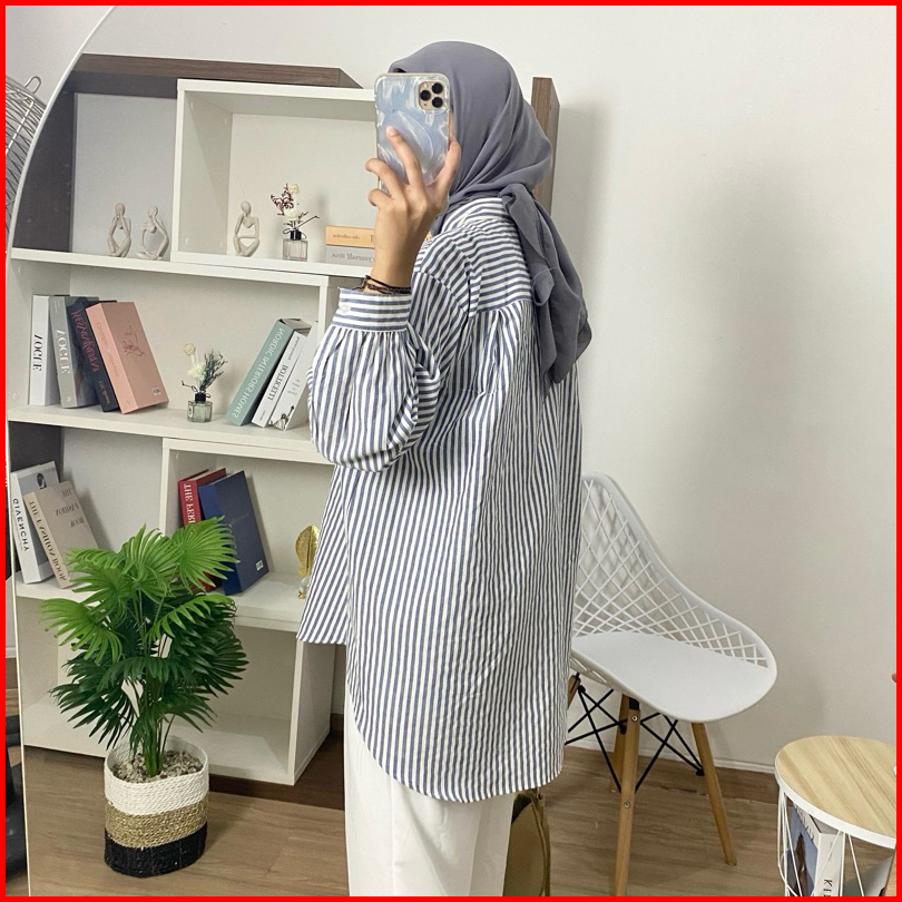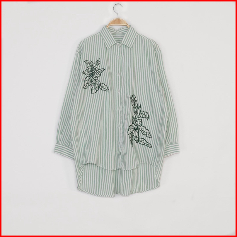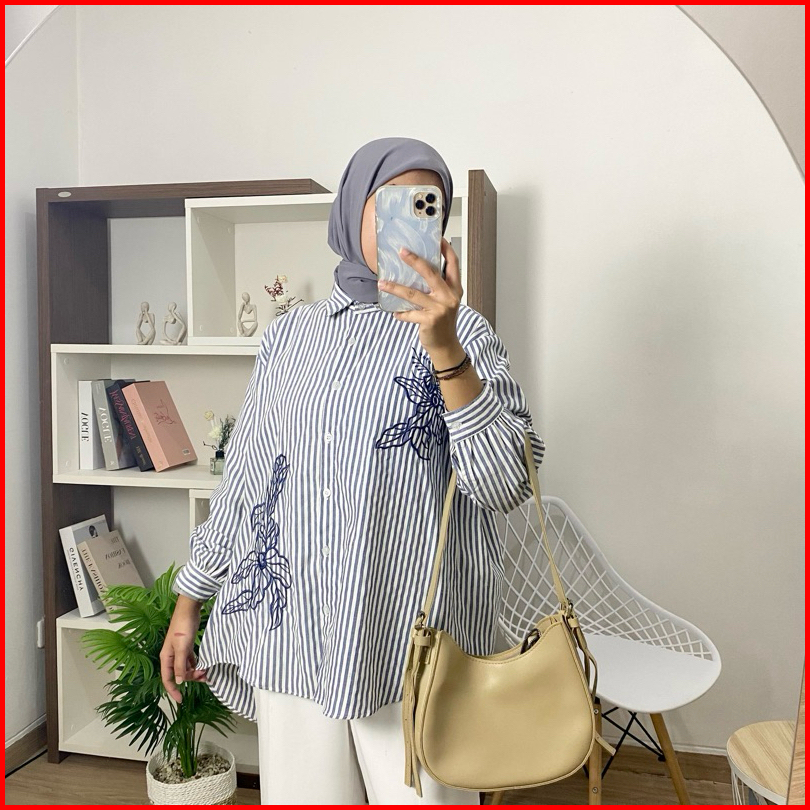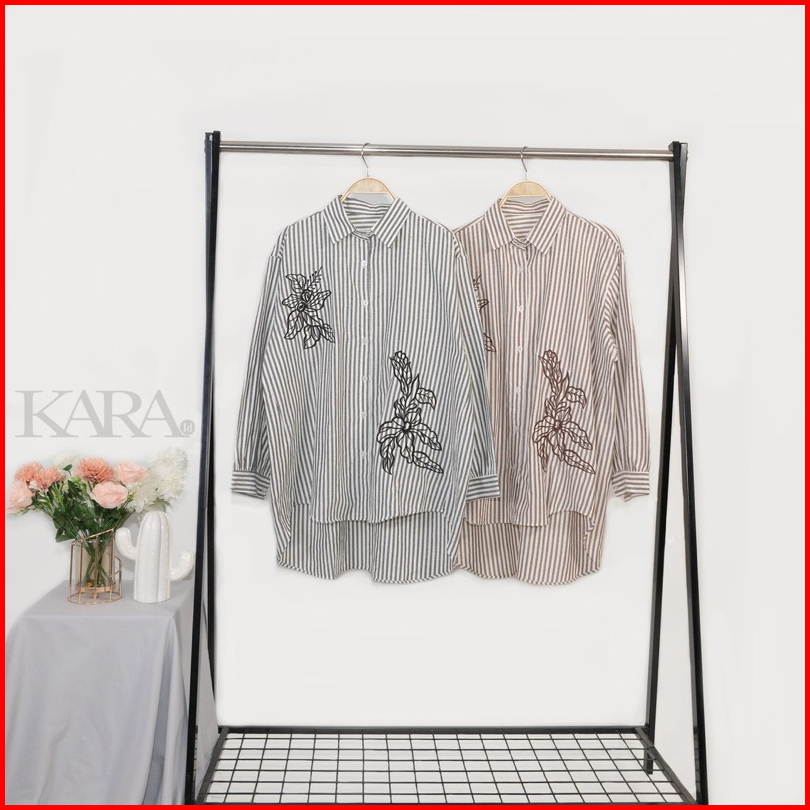 Kara.id Pevita Bordir Shirt Salur Kemeja Stripe Kemeja Kantor Office Shirt Atasan Lengan Panjang